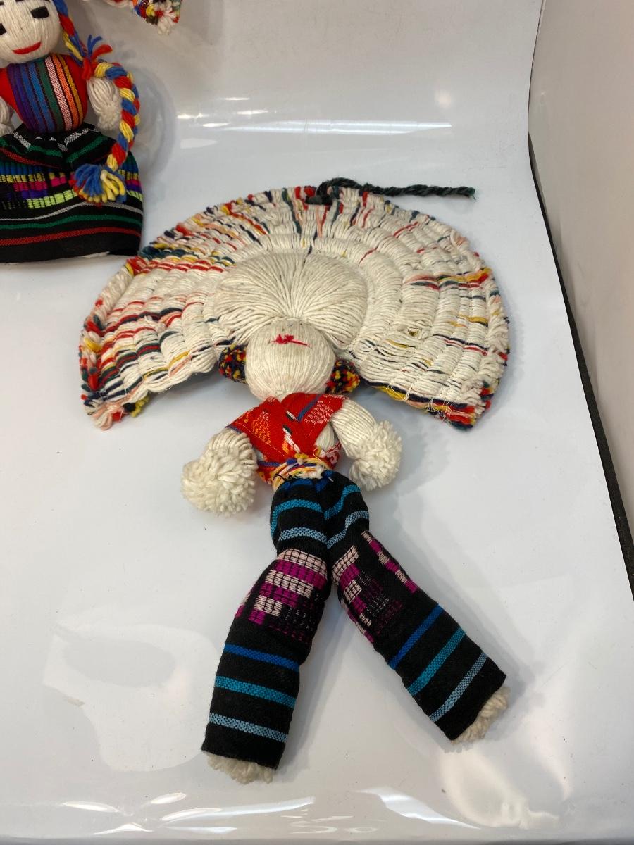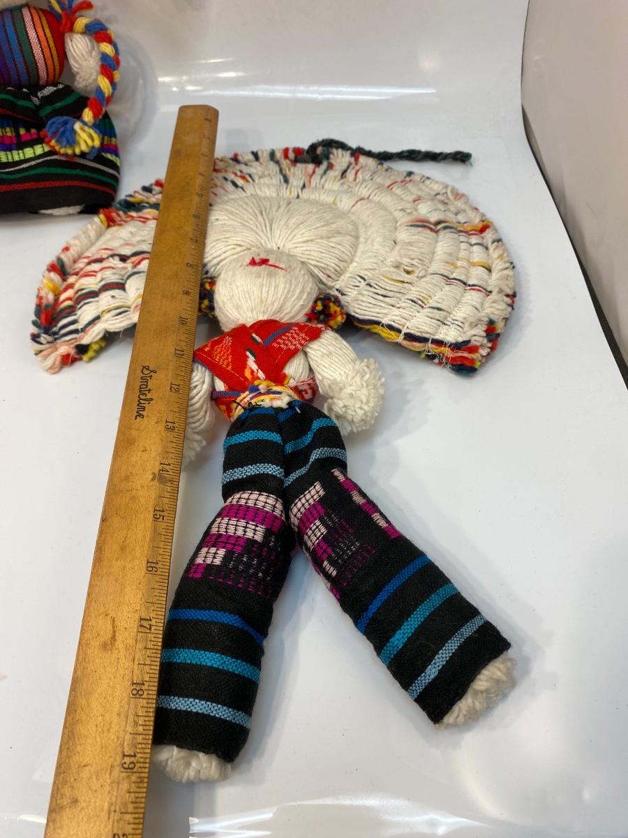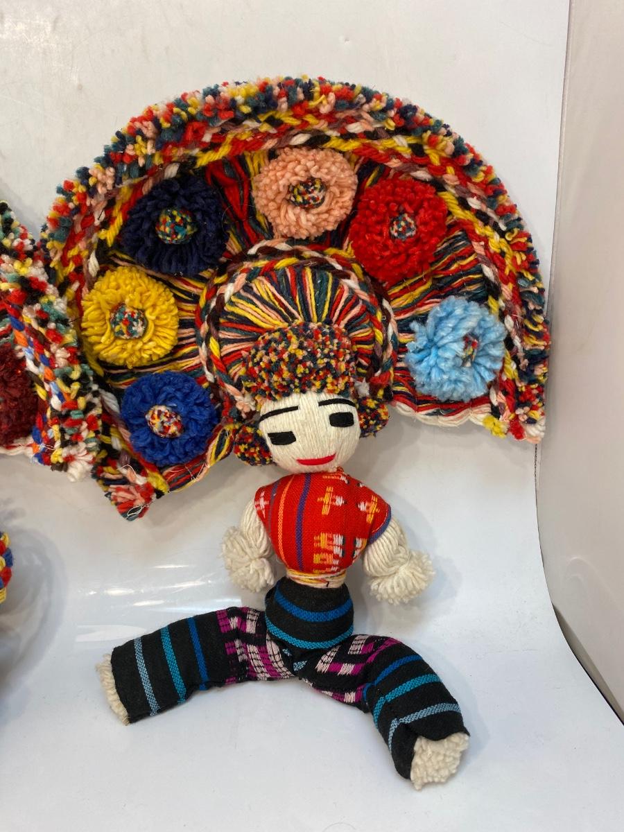 Pair of Colorful Ethnic Mexican Traditional Hand Made Vacation Souvenir Yarn Dolls
