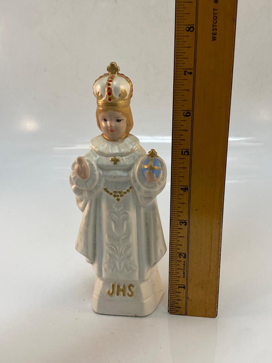 Vintage Spiritual Religious Ceramic Infant of Prague Statue Figurine. In good condition. About 7" size.