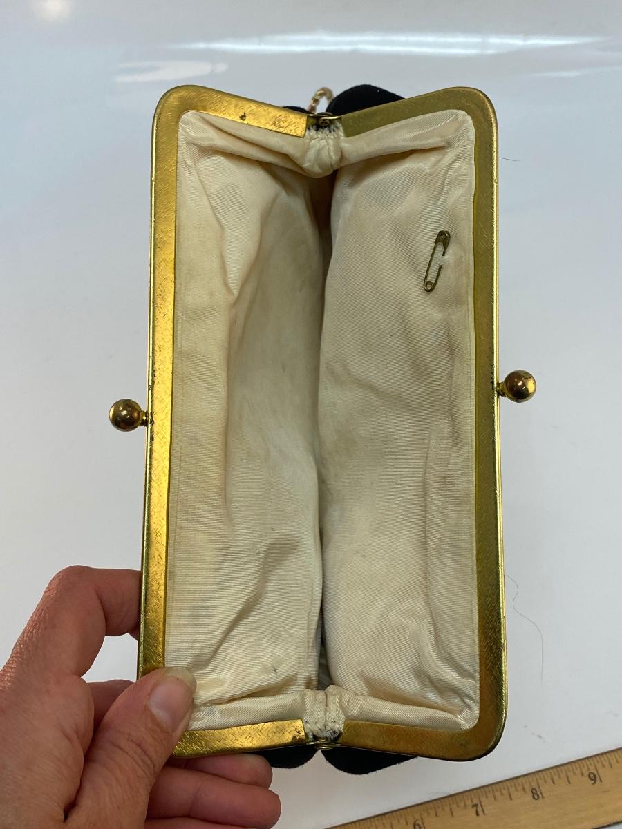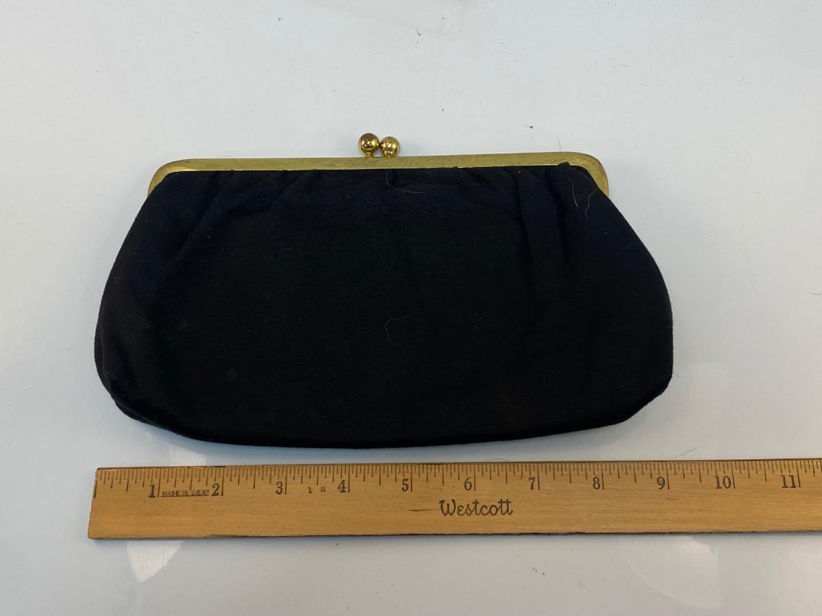 Vintage Retro Black & Gold Tone Metal Clutch Purse Evening Bag