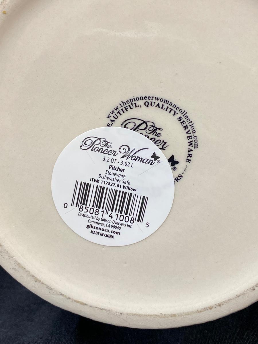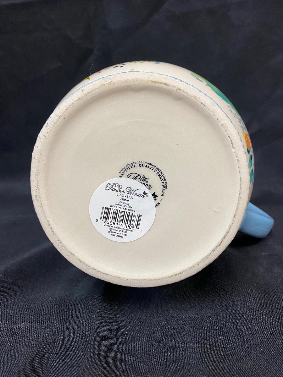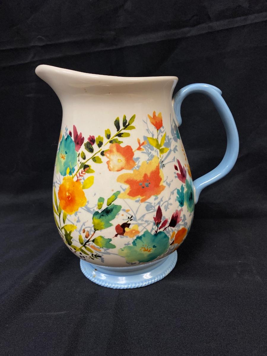 The Pioneer Woman Colorful Floral Stoneware Water Iced Tea Pitcher. In good condition. Original sticker still attached to the bottom. About 10" tall