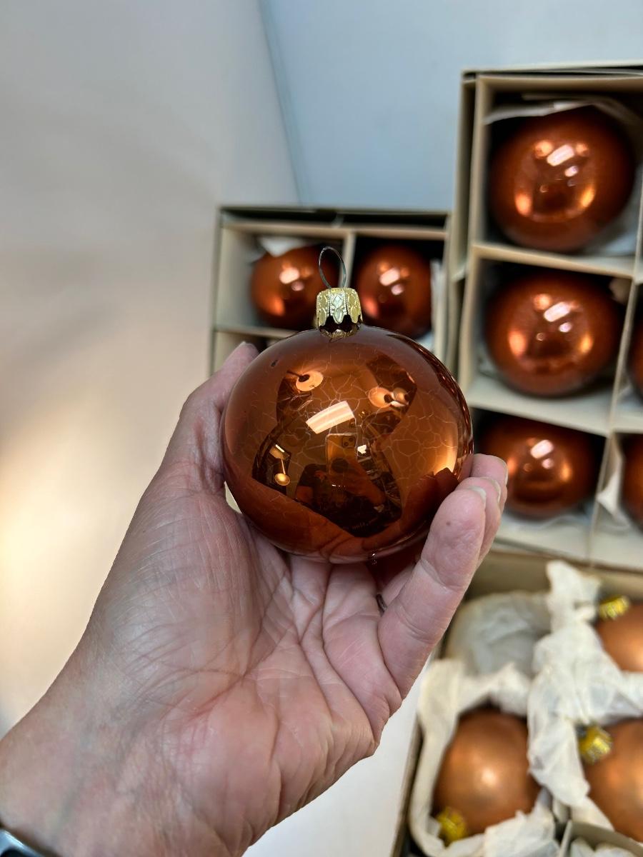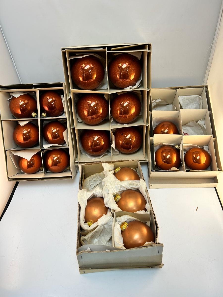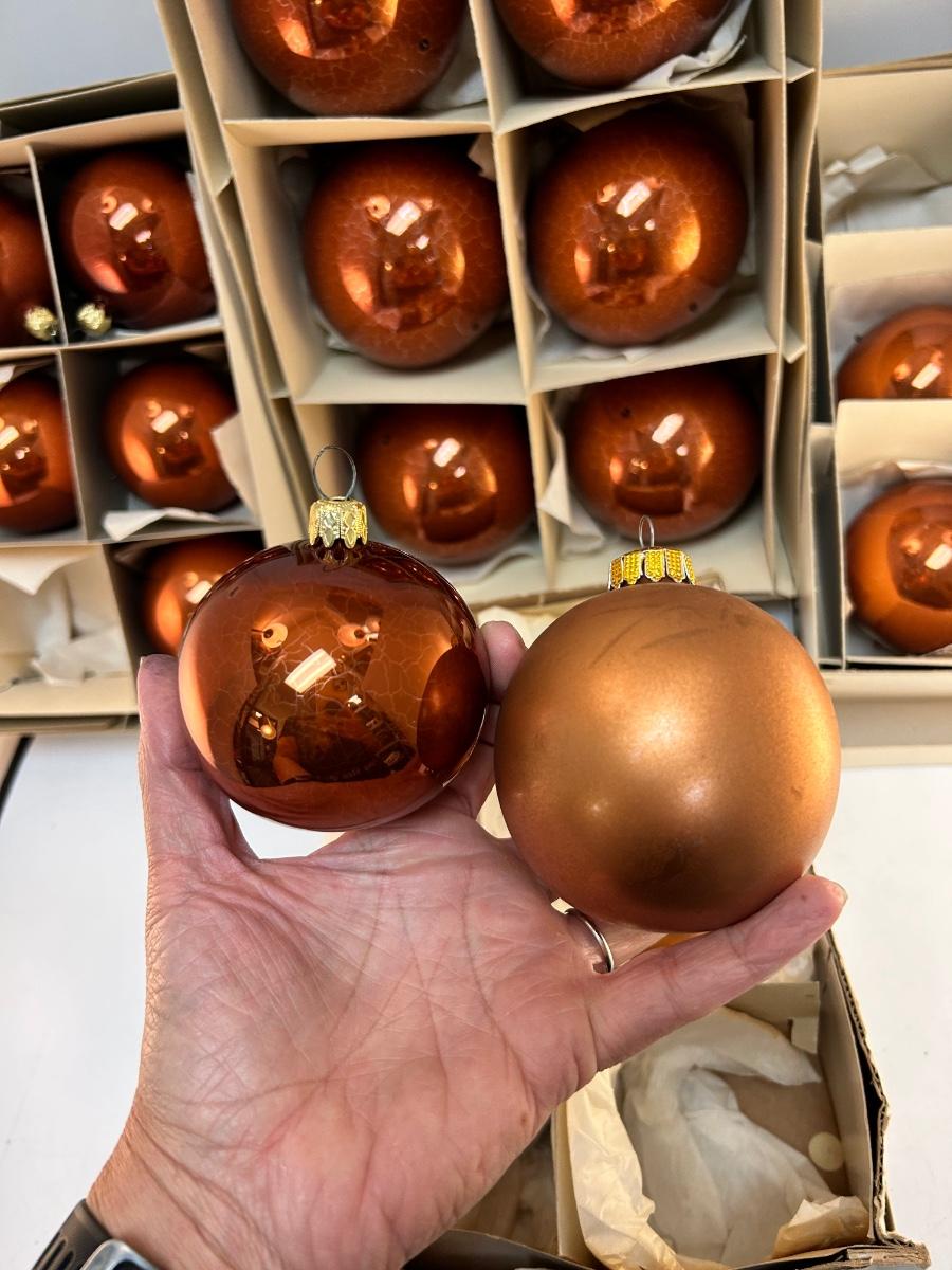 Mixed Finish Lot of Vintage Copper Colored Blown Glass Christmas Ball Tree Ornaments