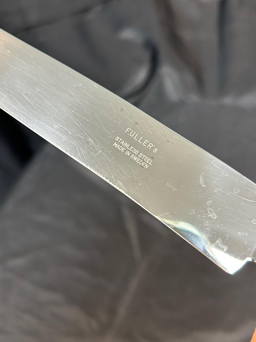 Vintage Fuller Faux Antler Black Handled Cutlery Carving Set Meat Fork Knife Blade Sharpener. In good vintage condition. Artificial antler handles, light weight.