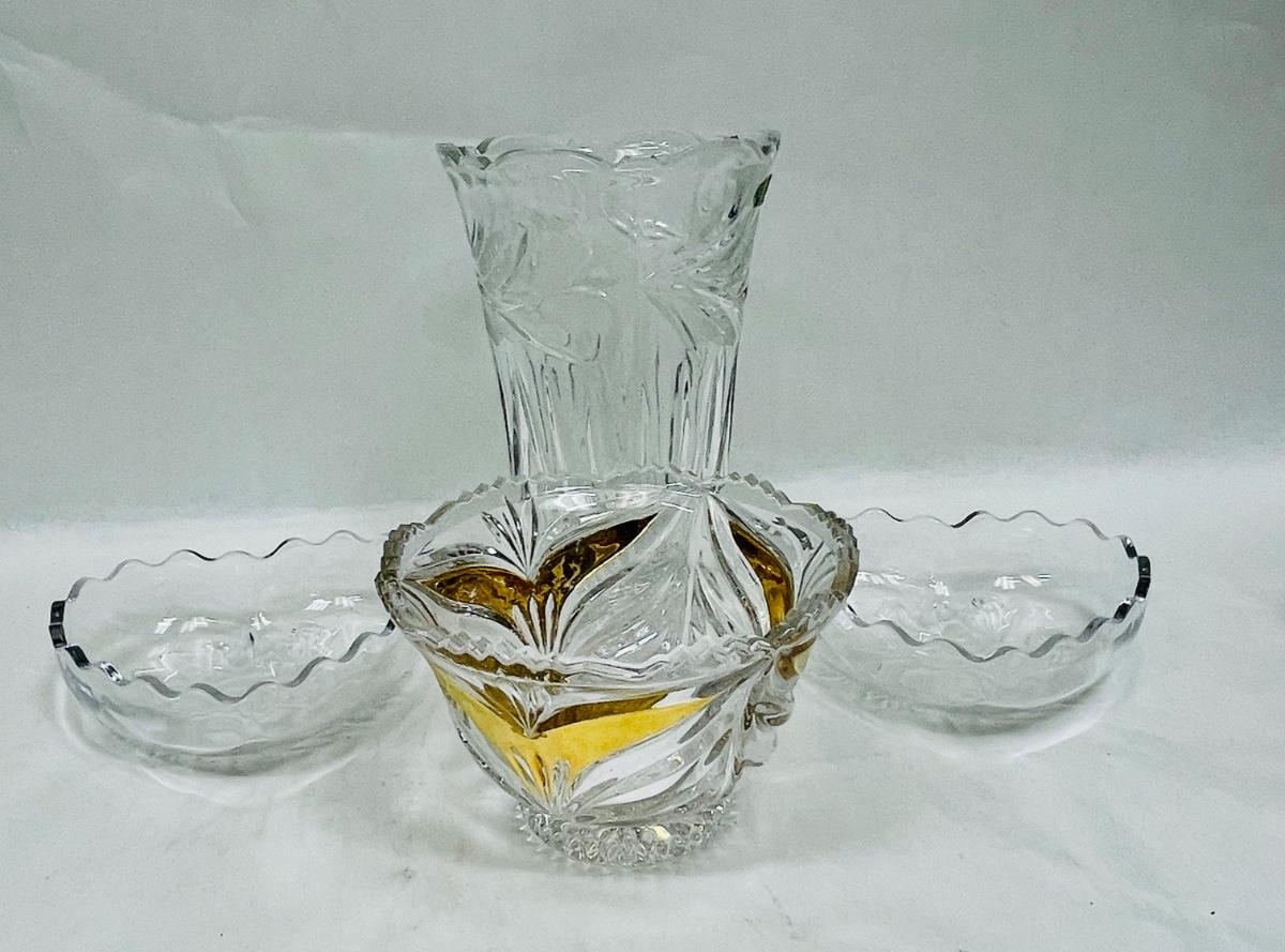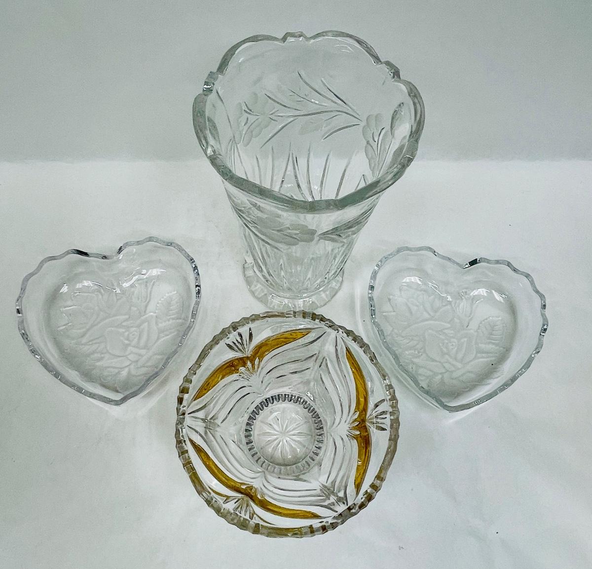 4pc Crystal Lot - Vase, Candy Dish, Heart Shaped dishes
