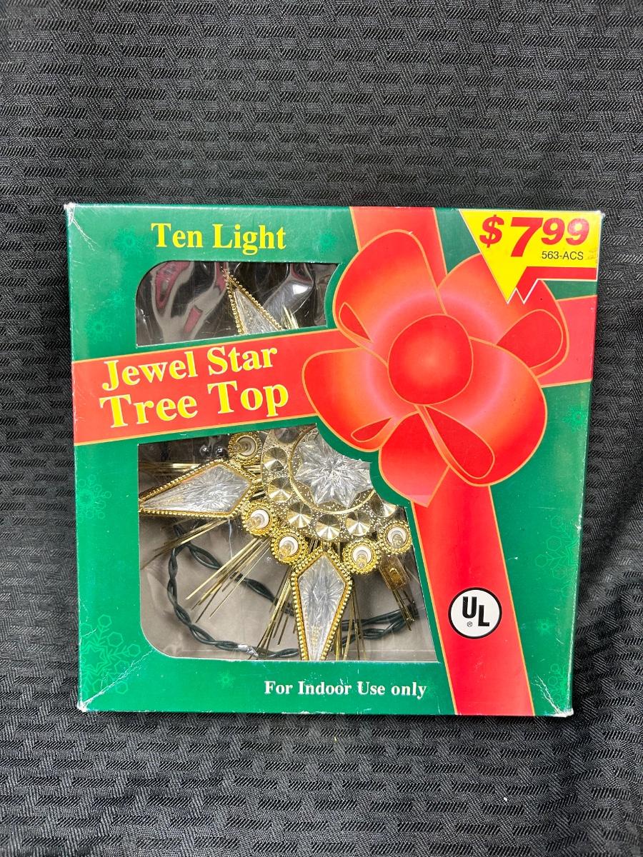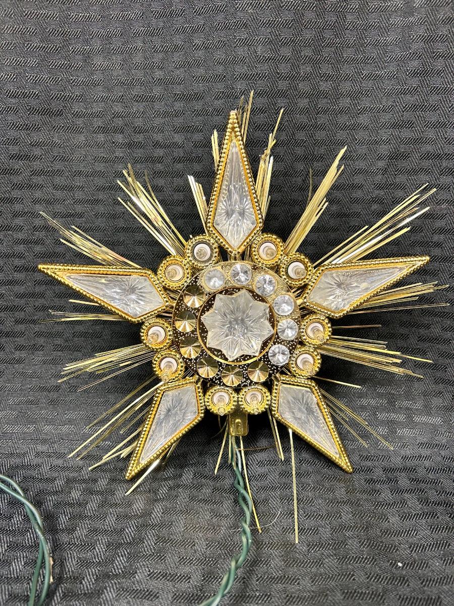 Vintage Retro Jewel Star Tree Topper Lights Up Works