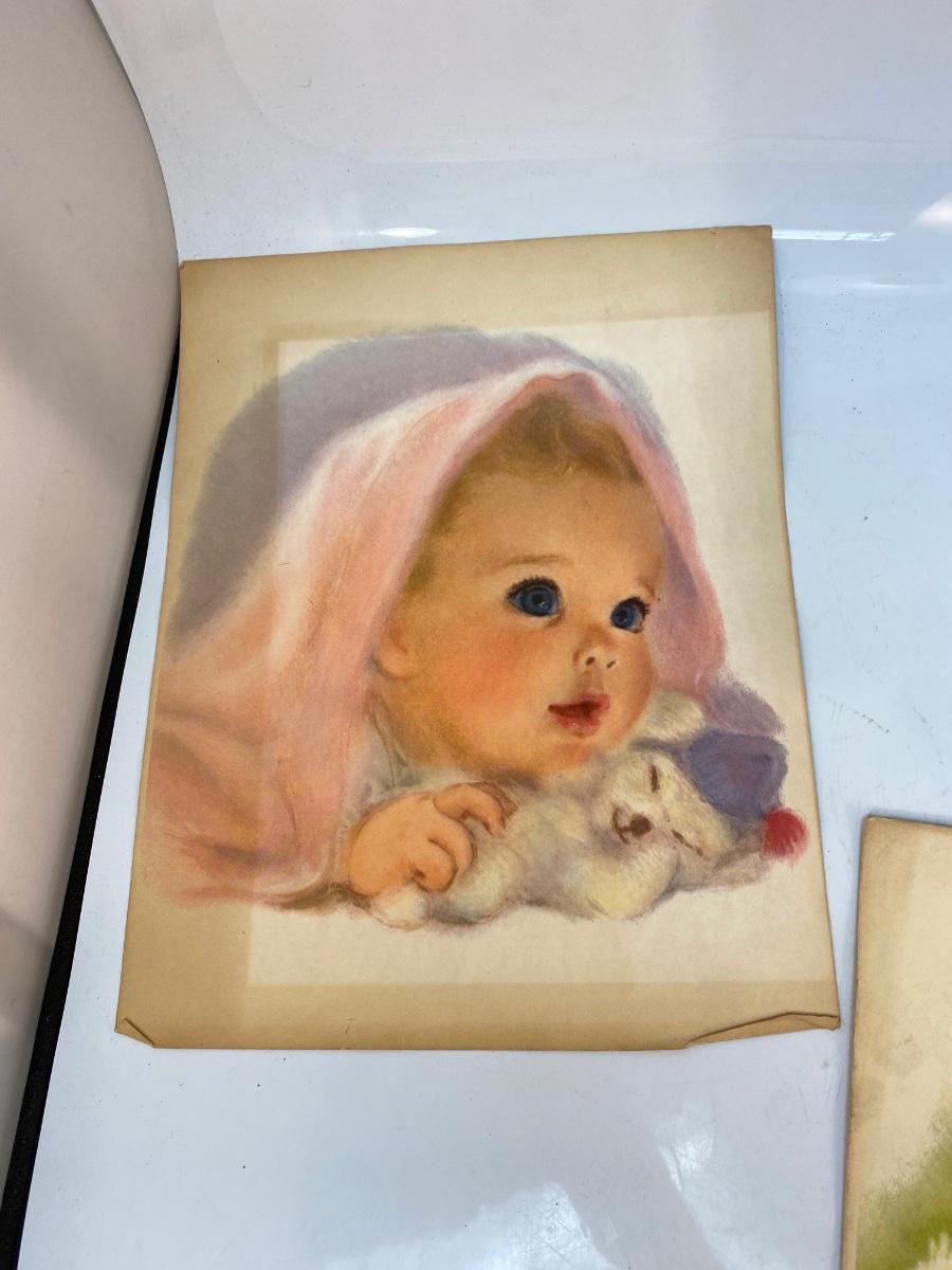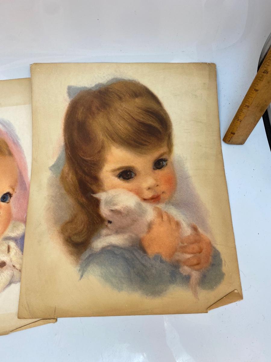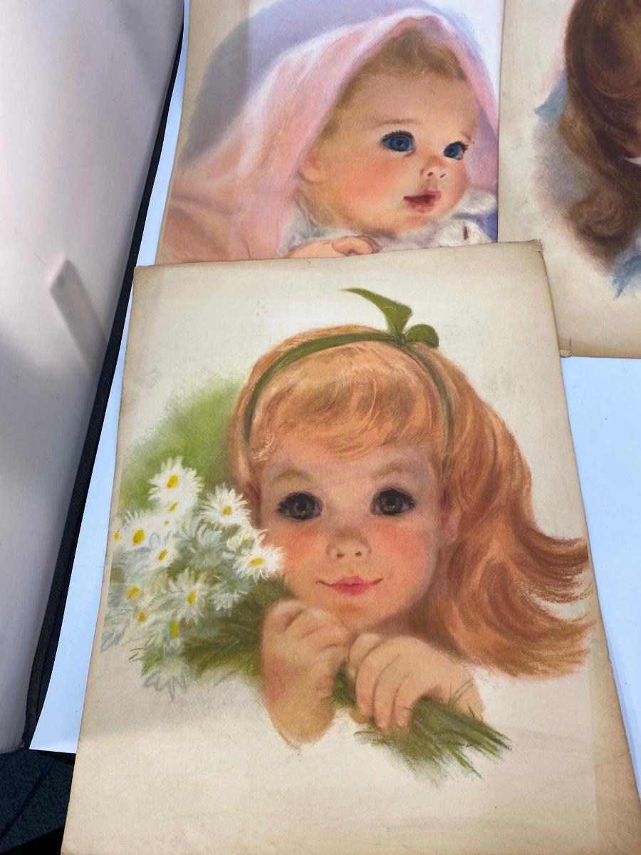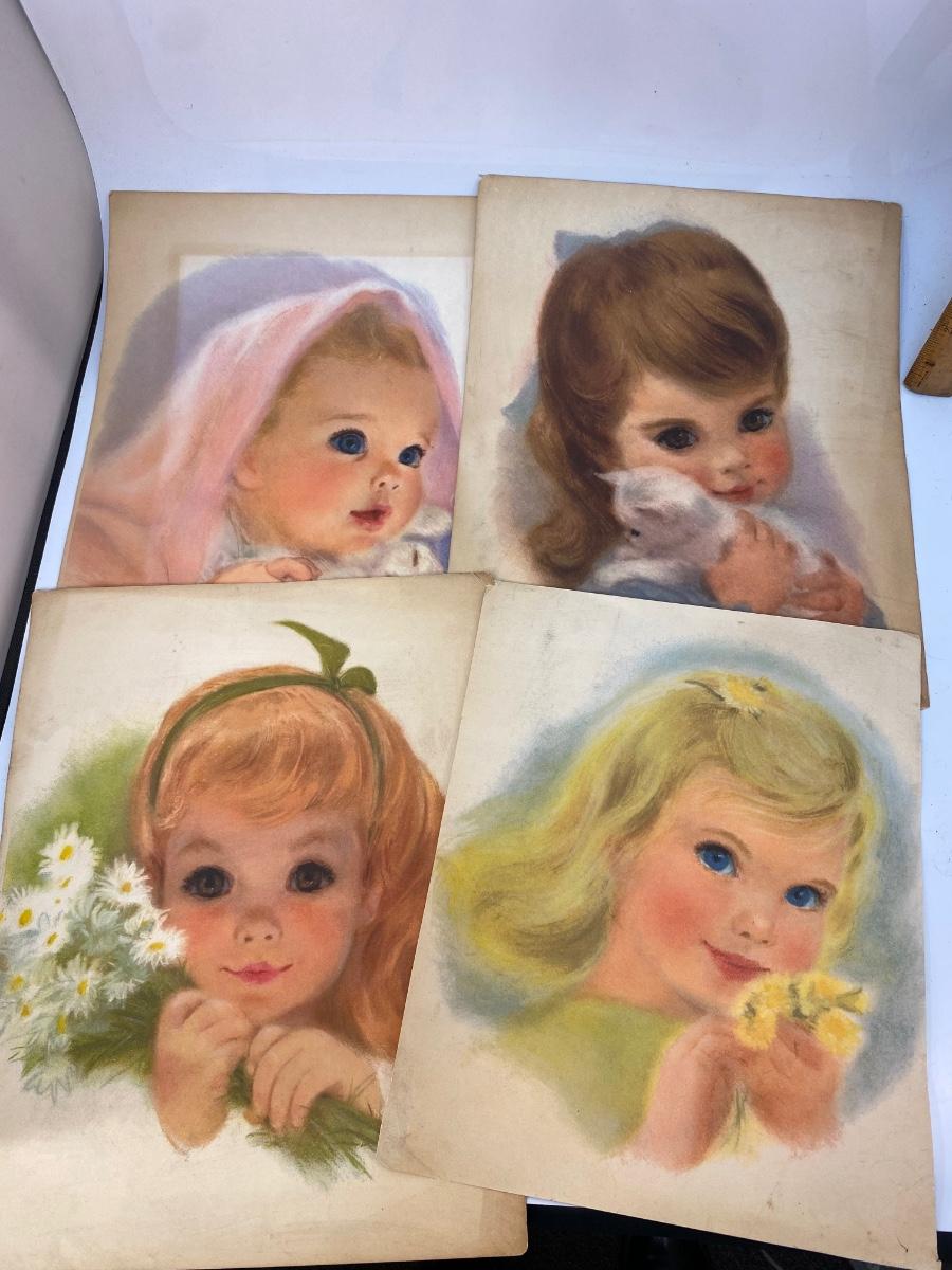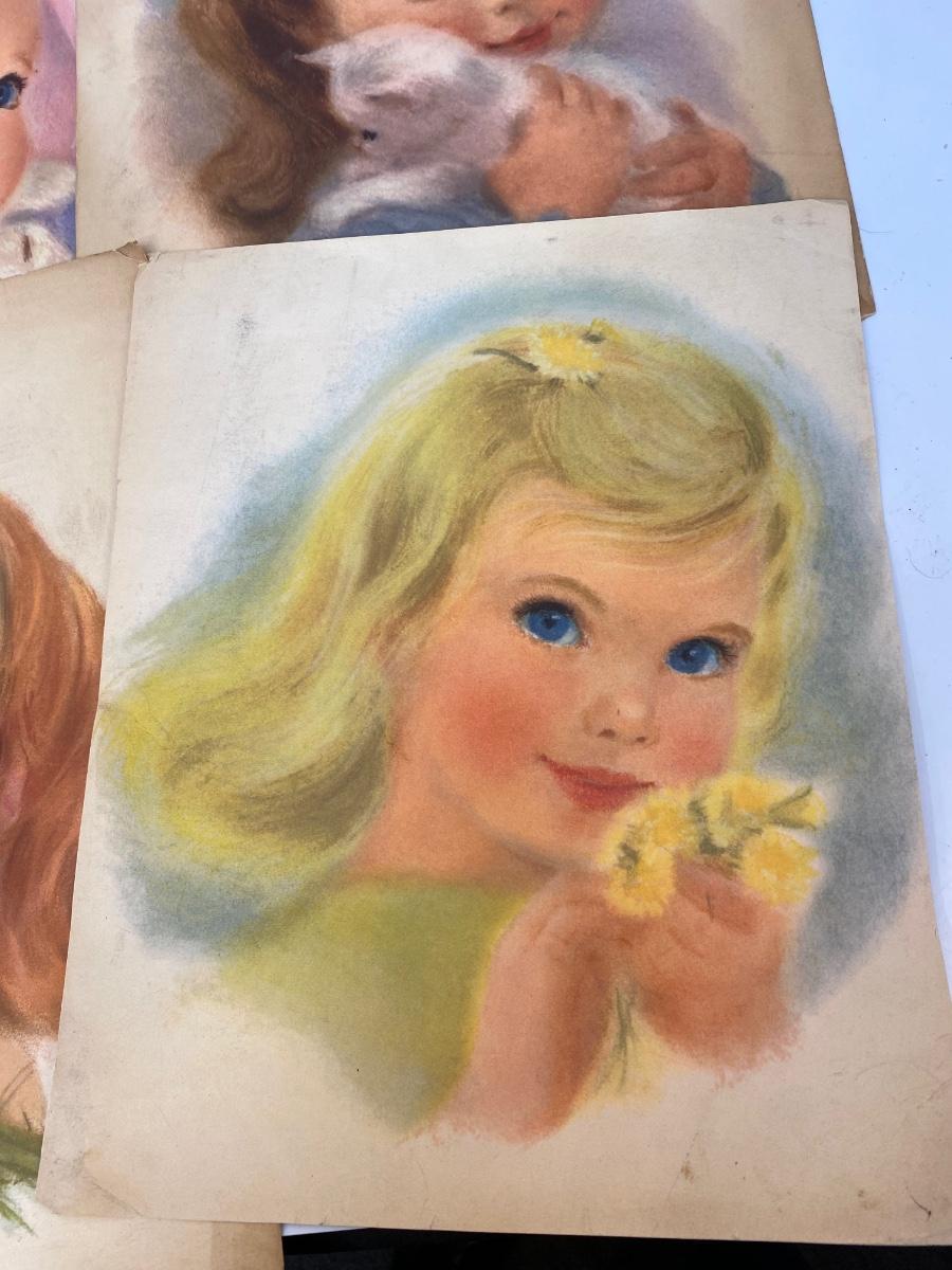 Set of 4 Vintage Child Little Girl Baby Pastel Art Drawing Unframed. Some light discoloration from age but in overall good condition, ready to be framed. Large size, over 12".