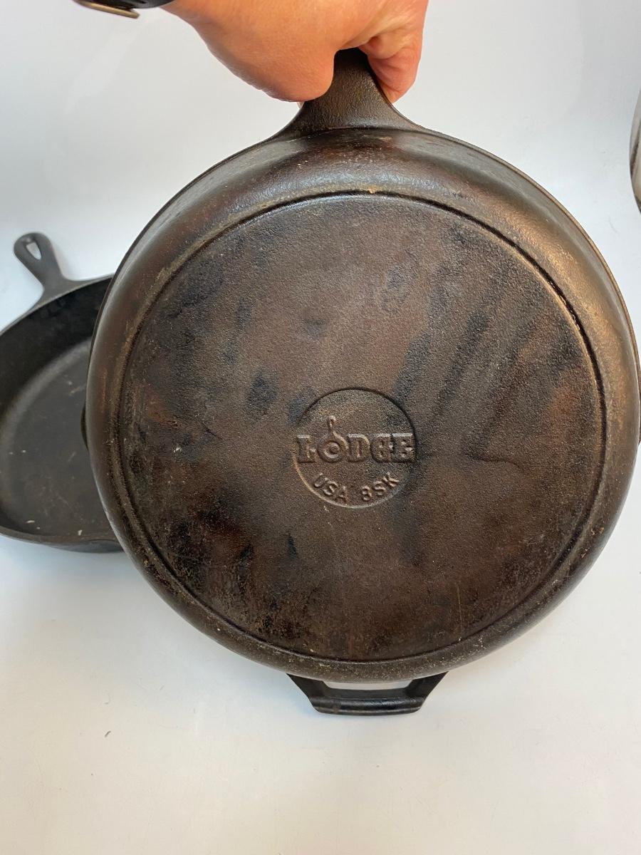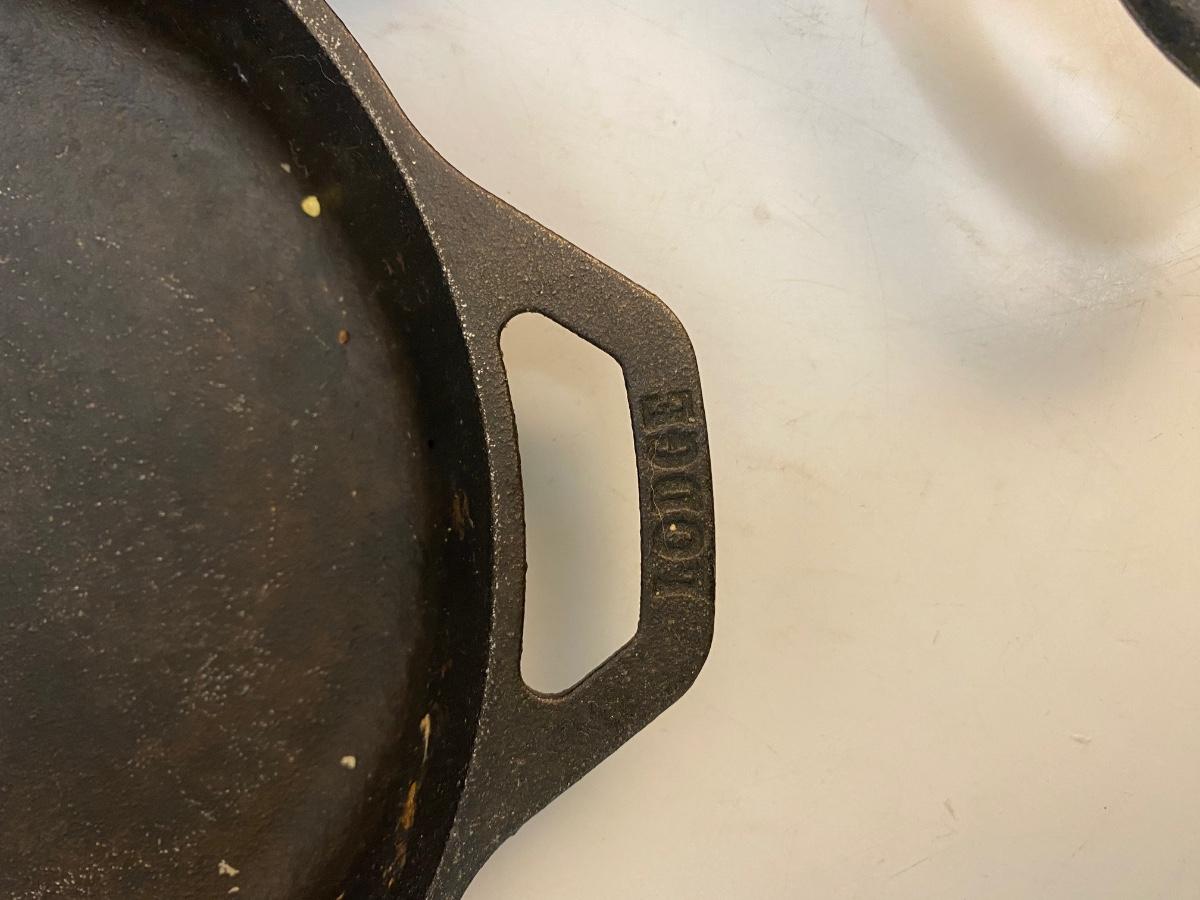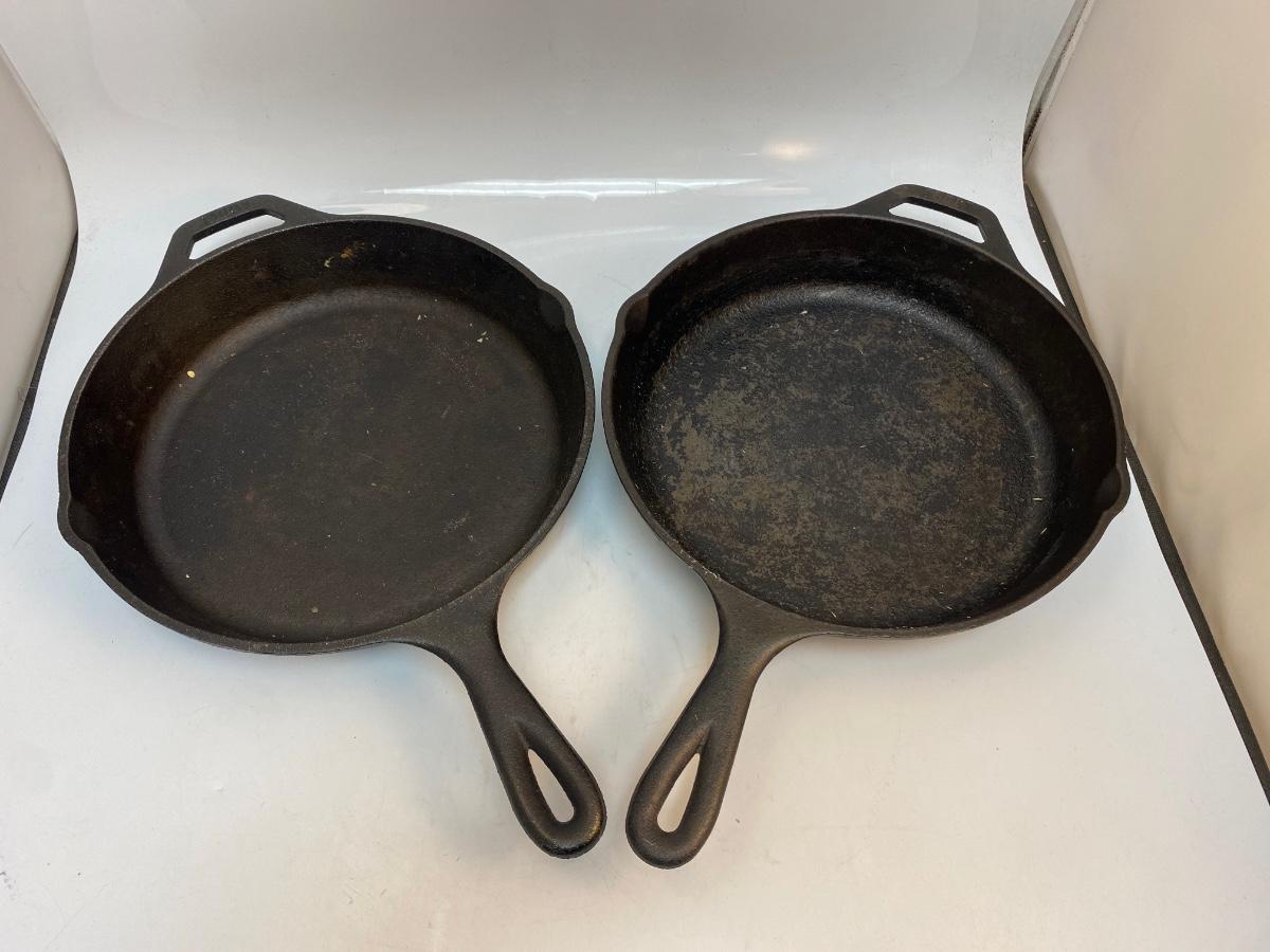 Pair of Lodge 10" Cast Iron Skillet Frying Pans. In previously used condition.