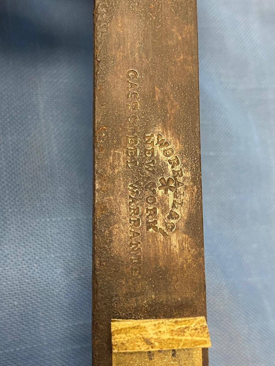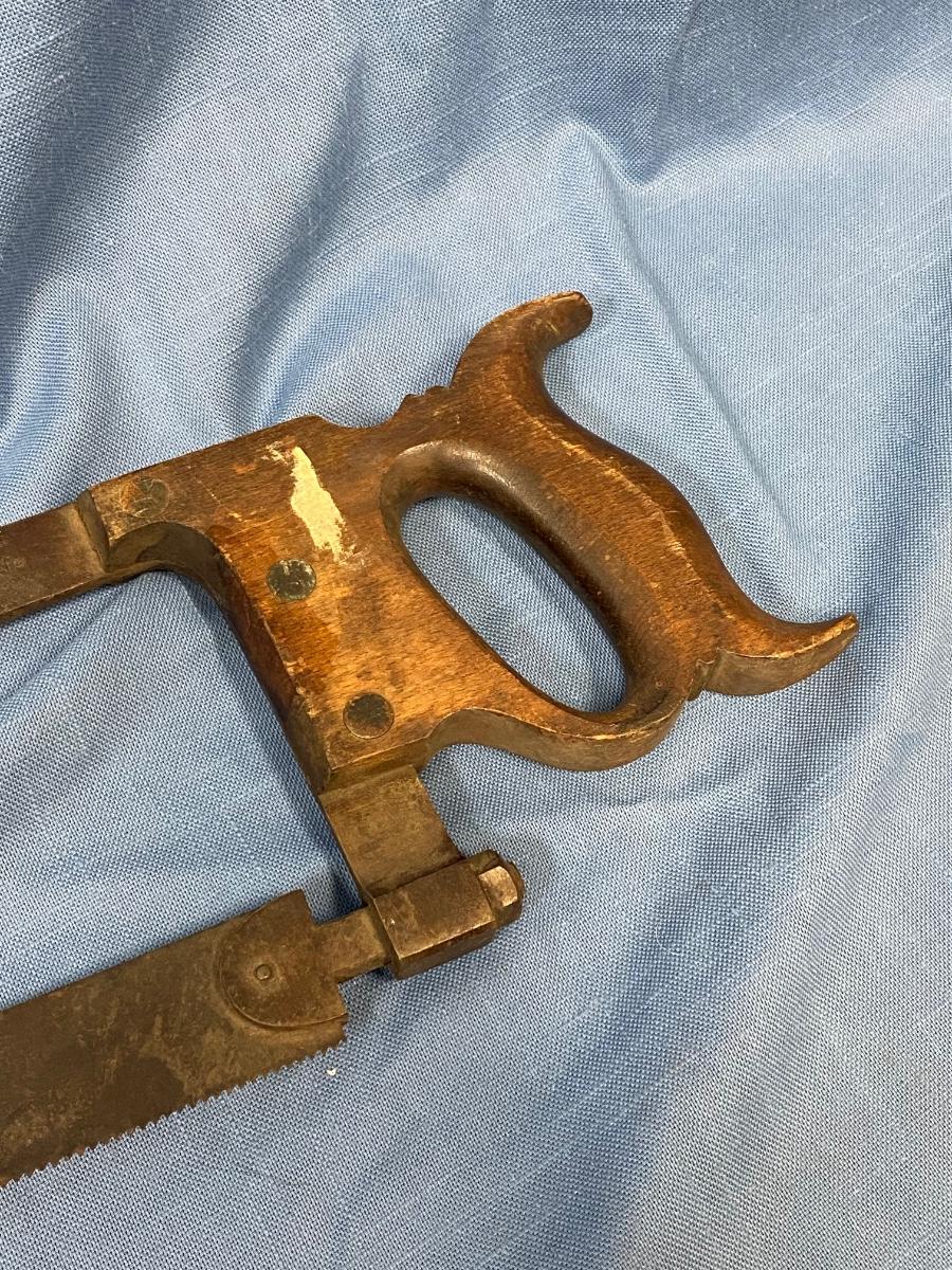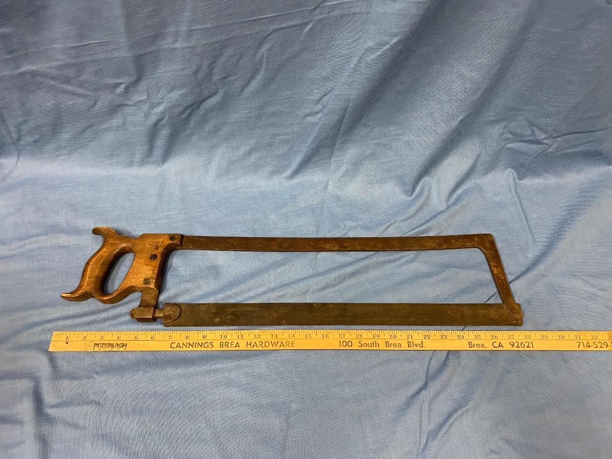 Large Antique Vintage Meat Hack Saw Worrall & Co N.Y. In vintage condition. Displays great. About 22" size.