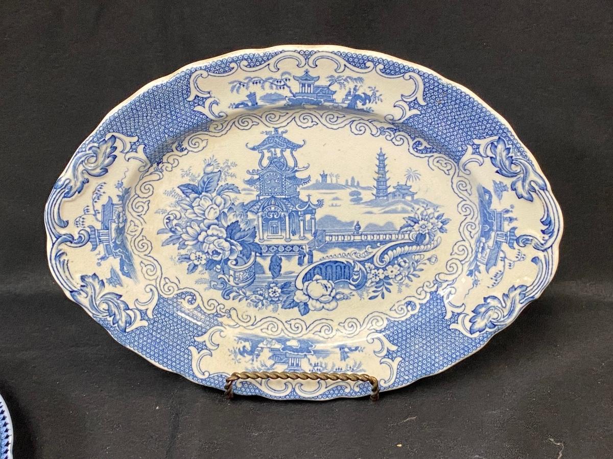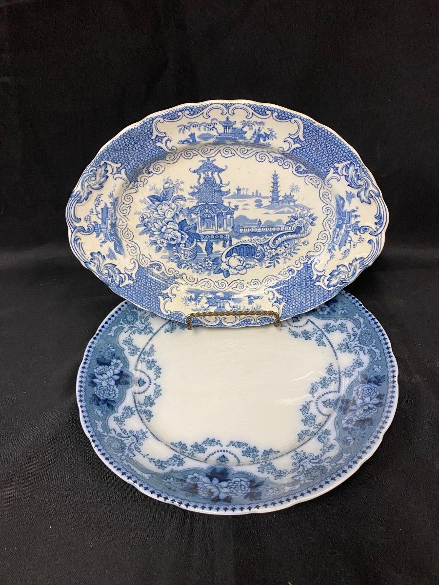 Vintage Flow Blue Serving Plates Platters Made in England