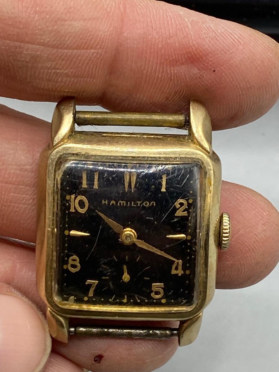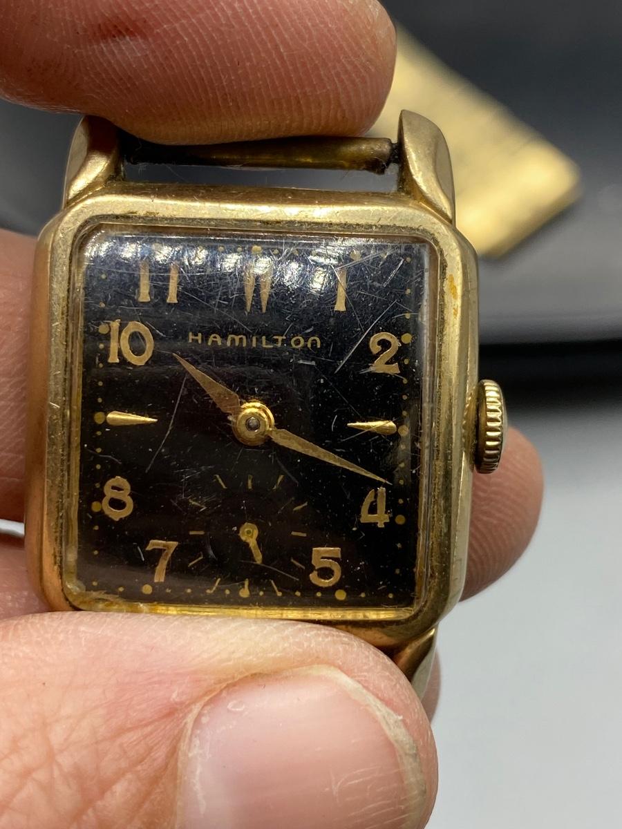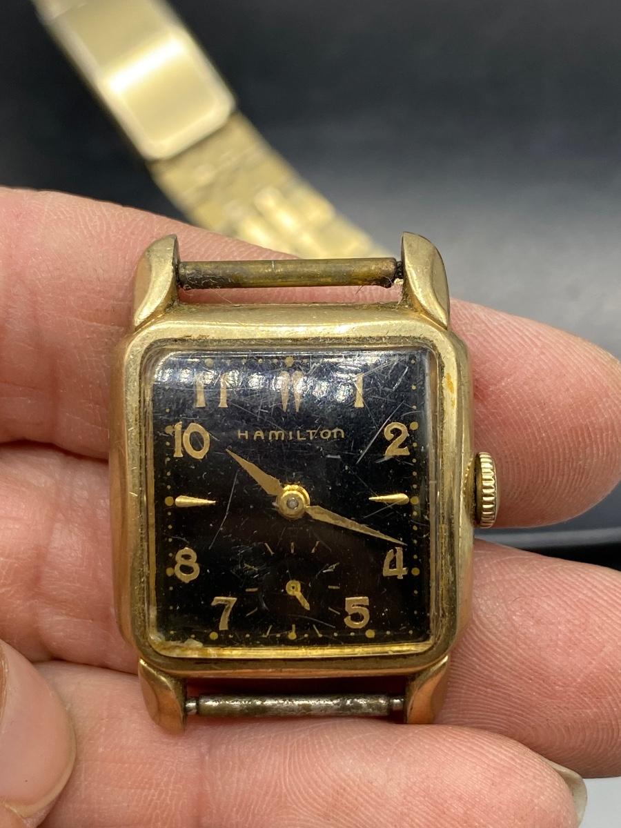 Vintage Midcentury Hamilton Wind Up 10k Gold Filled Watch Face with Wrist Band