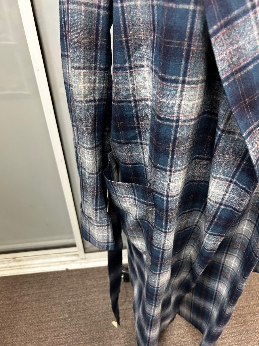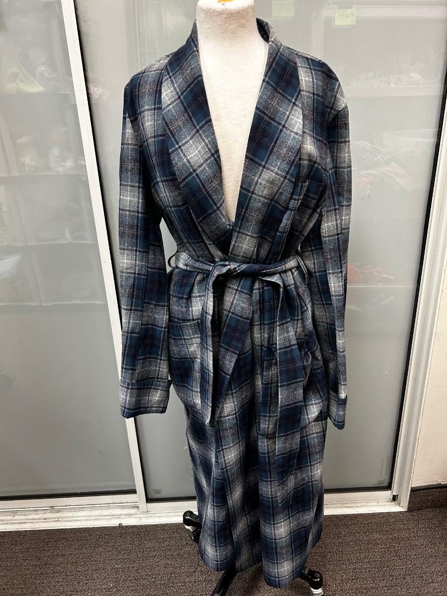 Blue Grey Plaid Pendleton Wool Flannel Robe Medium