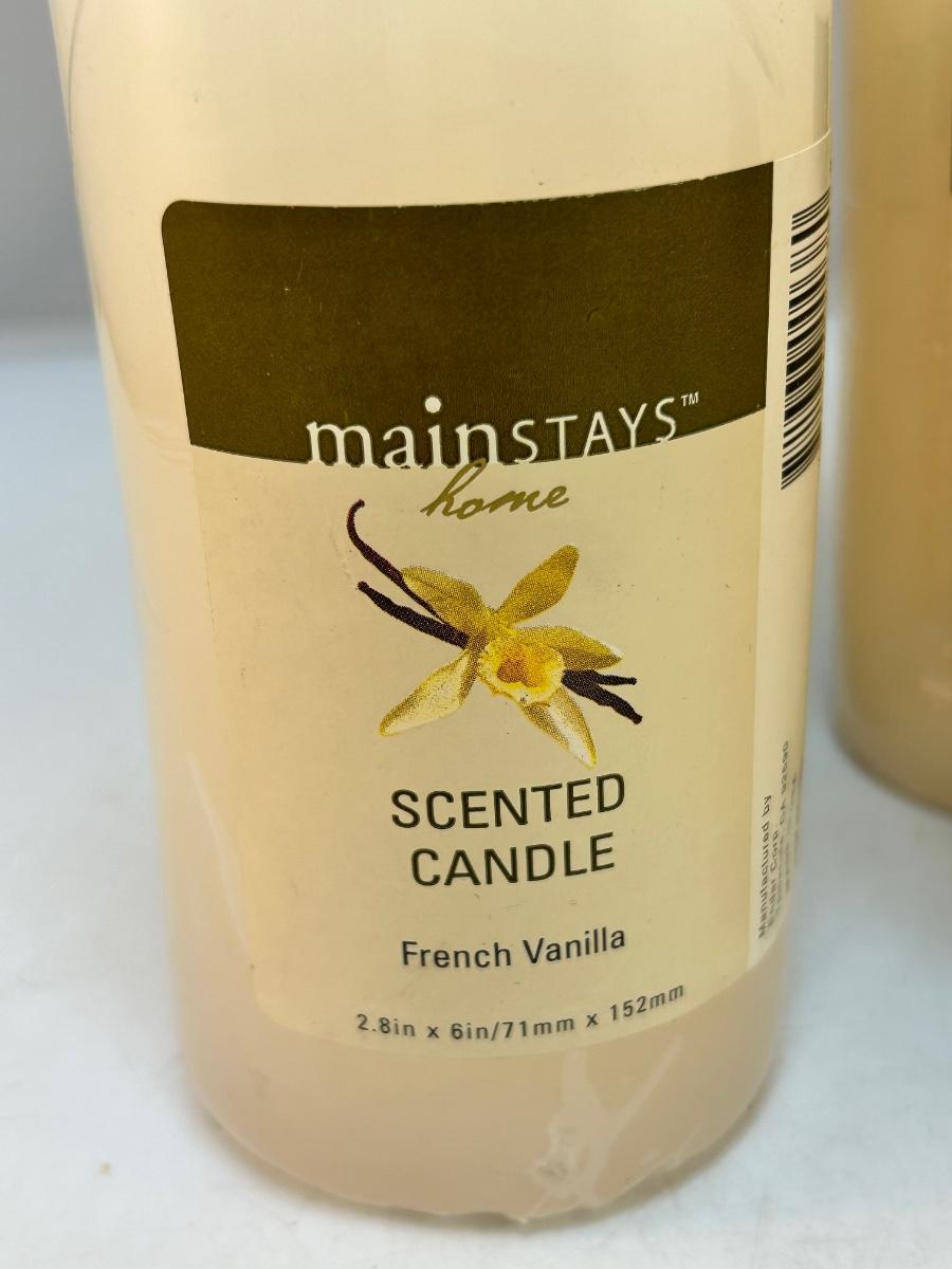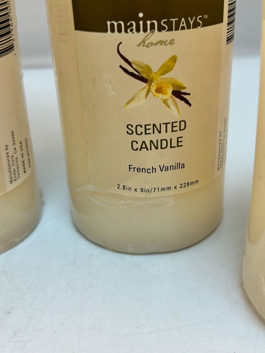 Lot of Four Pillar Style French Vanilla Scented Wax Candles UNUSED
