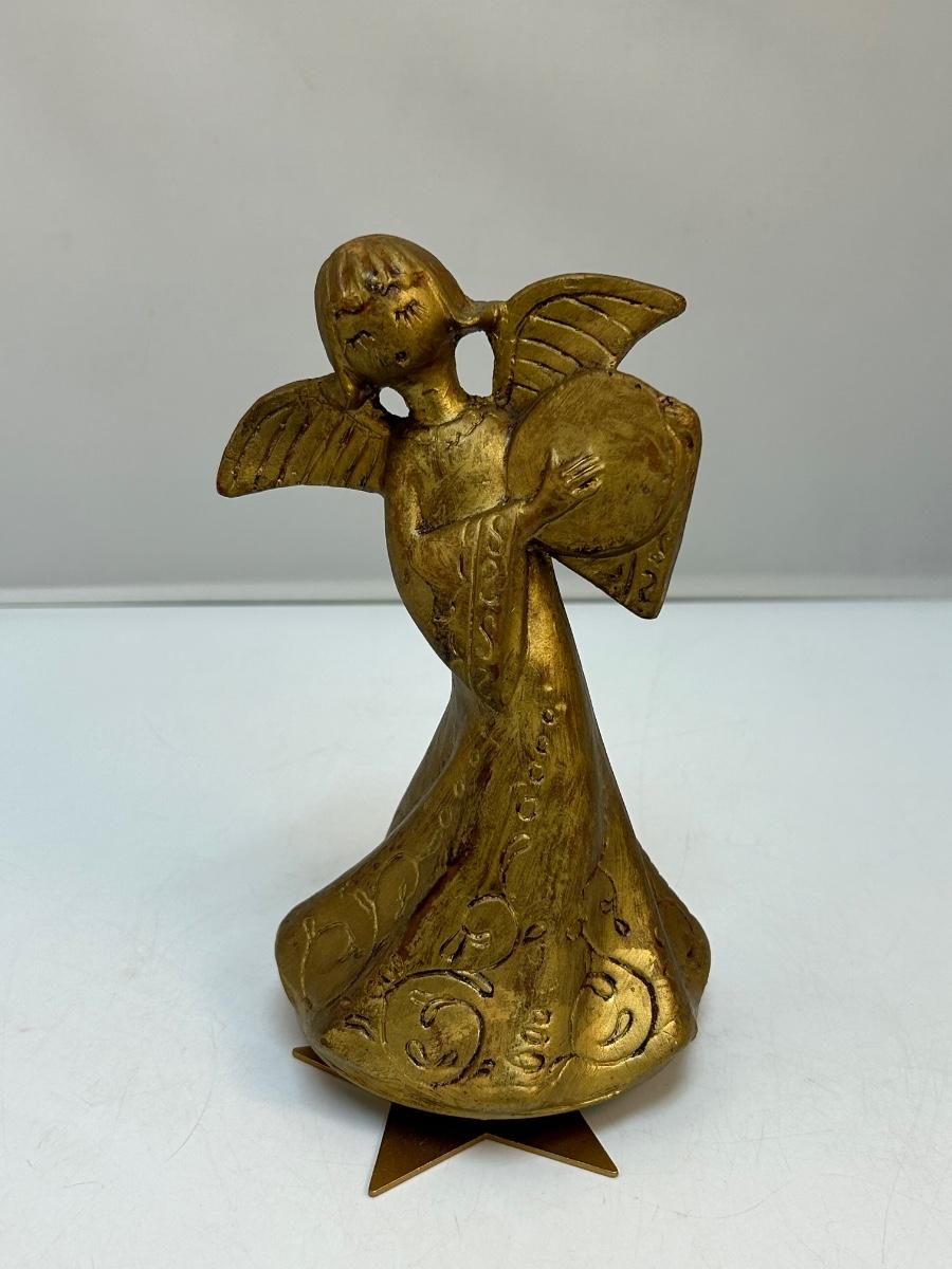 Vintage Gold Tone Christmas Holiday Angel Wind Up Music Box