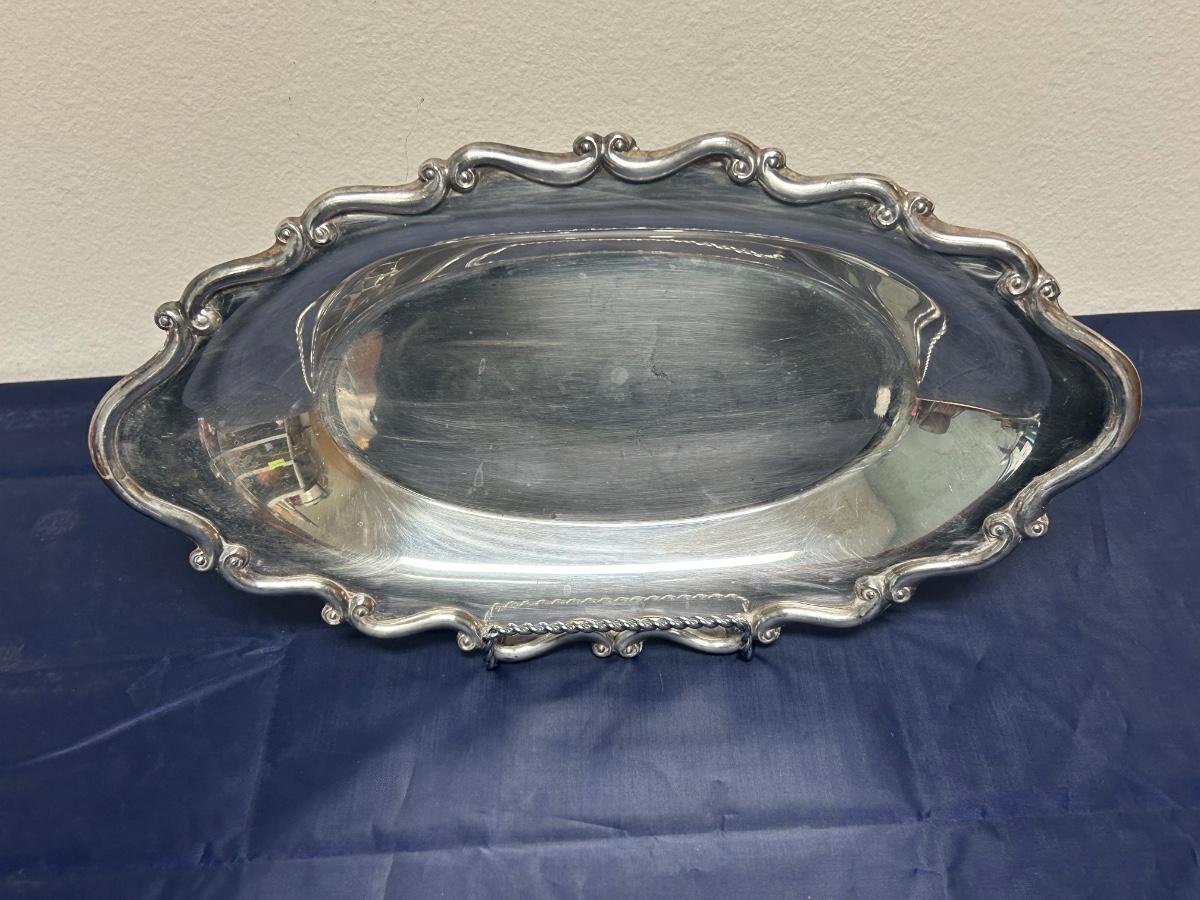 Vintage Oblong Oval Silver Plate Serving Dish Trinket Bowl