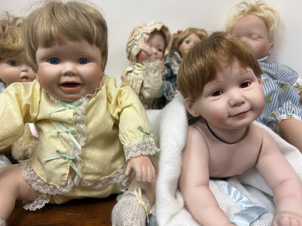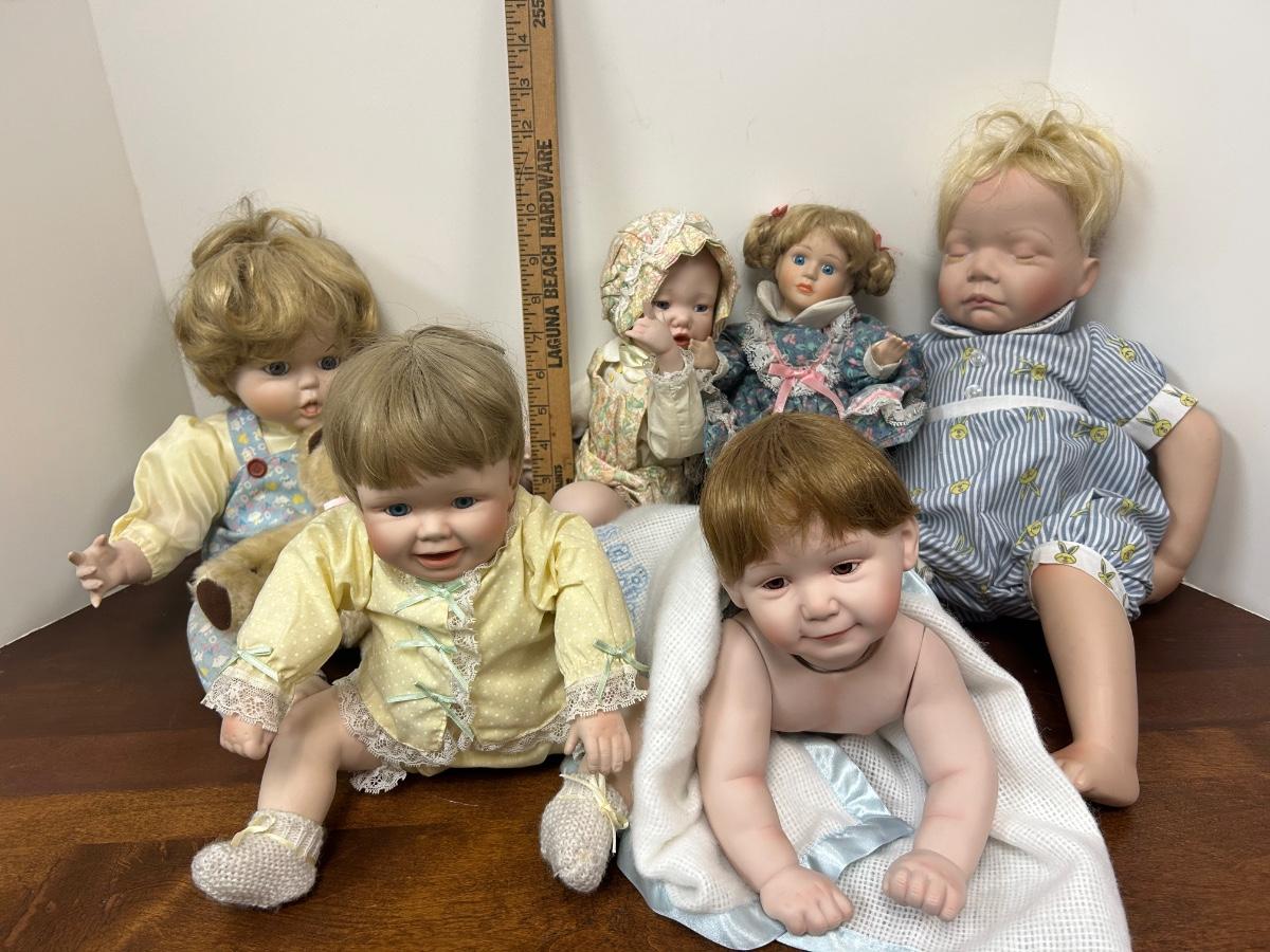 Mixed Collectible Ashton Drake Bisque Porcelain Dolls. In displayed condition, may be dusty from previous display.