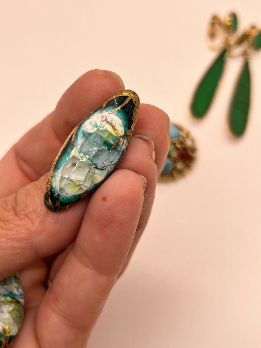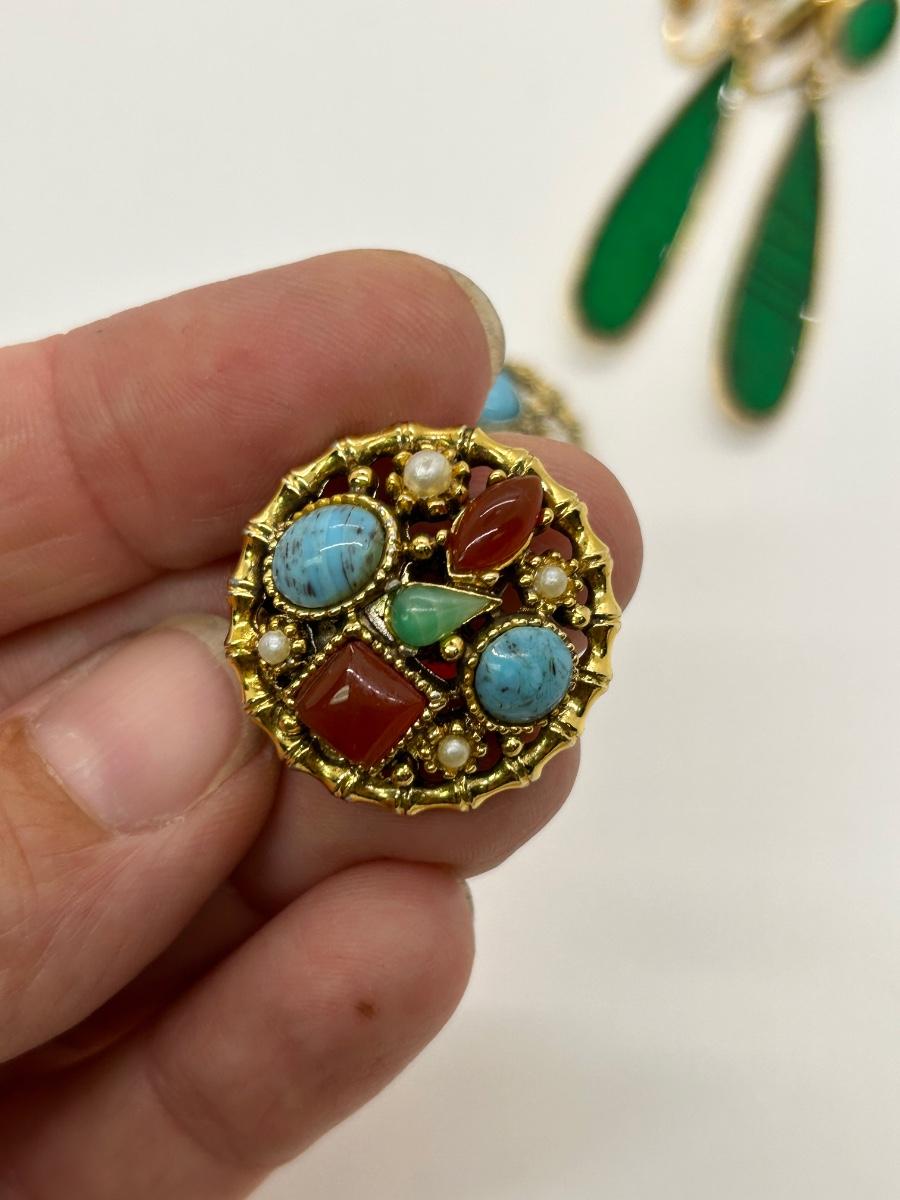Three Pairs of Vintage Retro Jewel Tone Clip Style Earrings. In good condition.