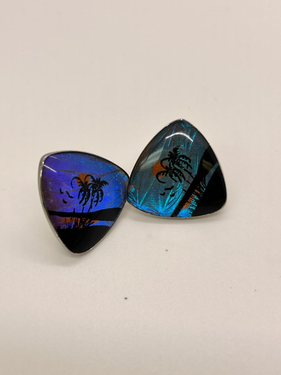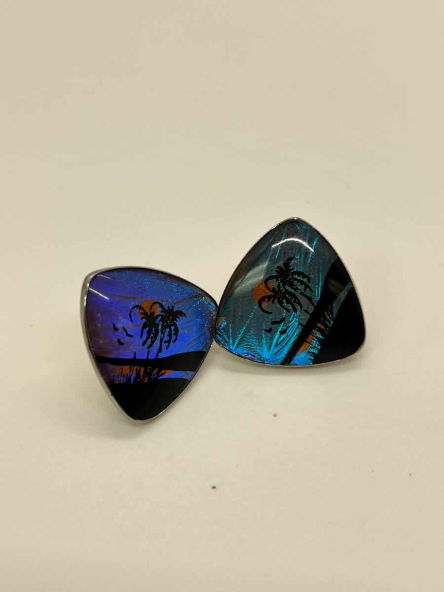 Pair of Retro Holographic Beach Scene Clip Style Earrings