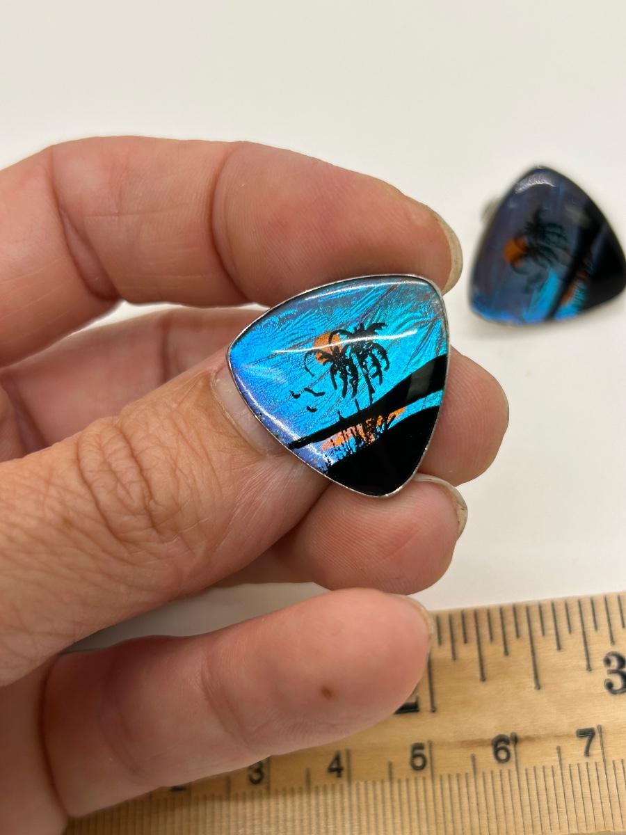 Pair of Retro Holographic Beach Scene Clip Style Earrings. In good condition.