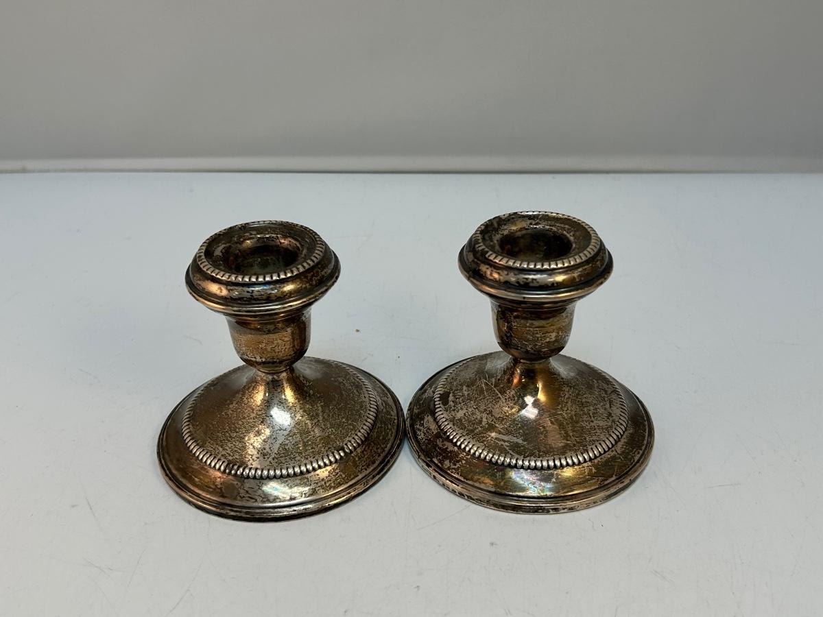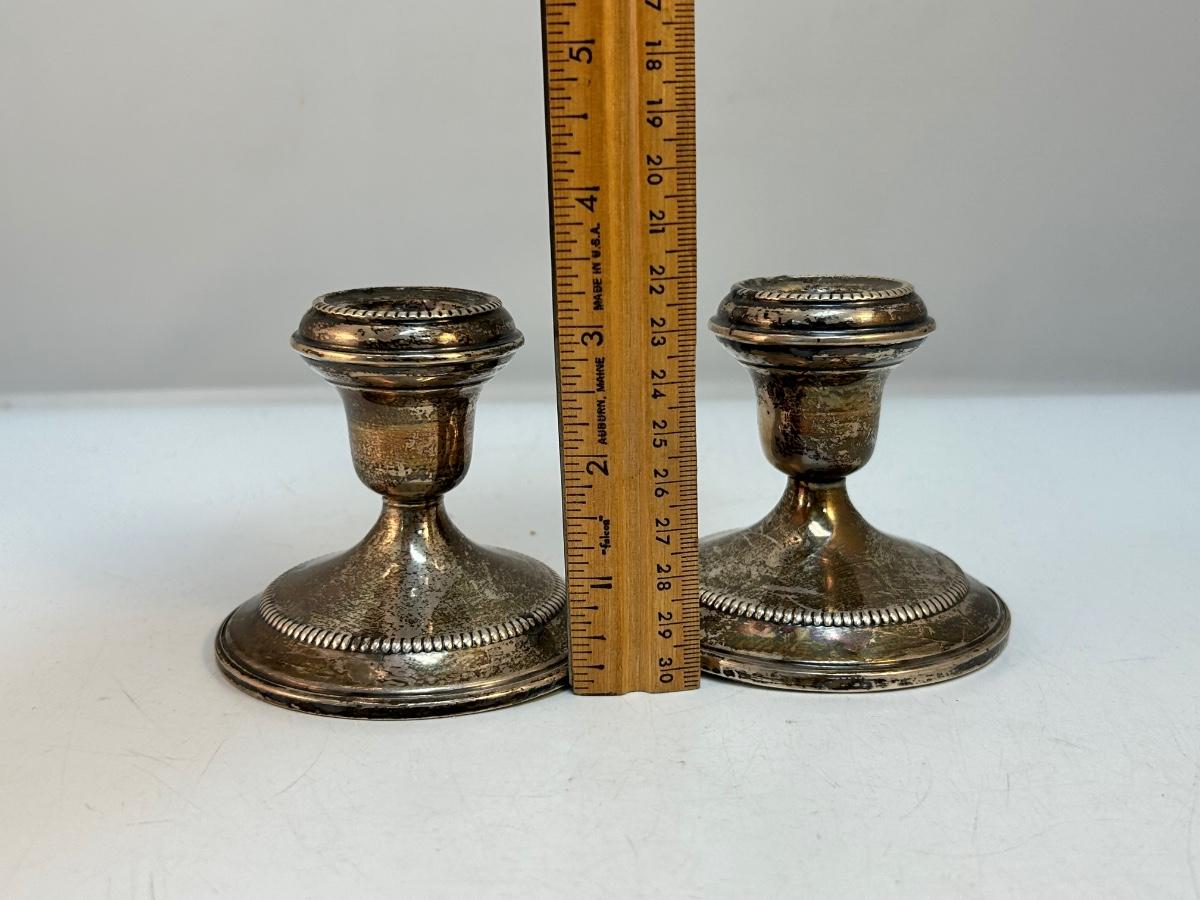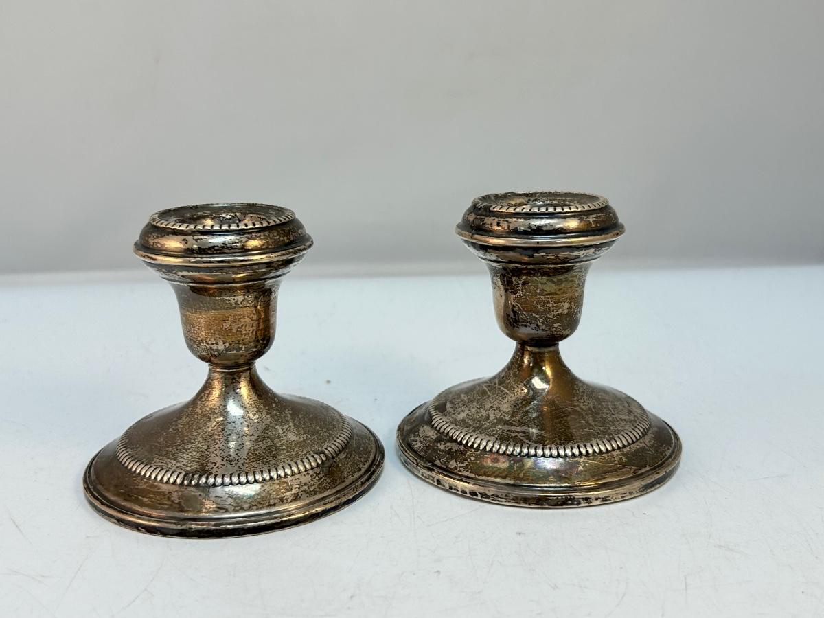Pair of Weighted Sterling Silver Candlestick Holders. Short, just over 3" tall.