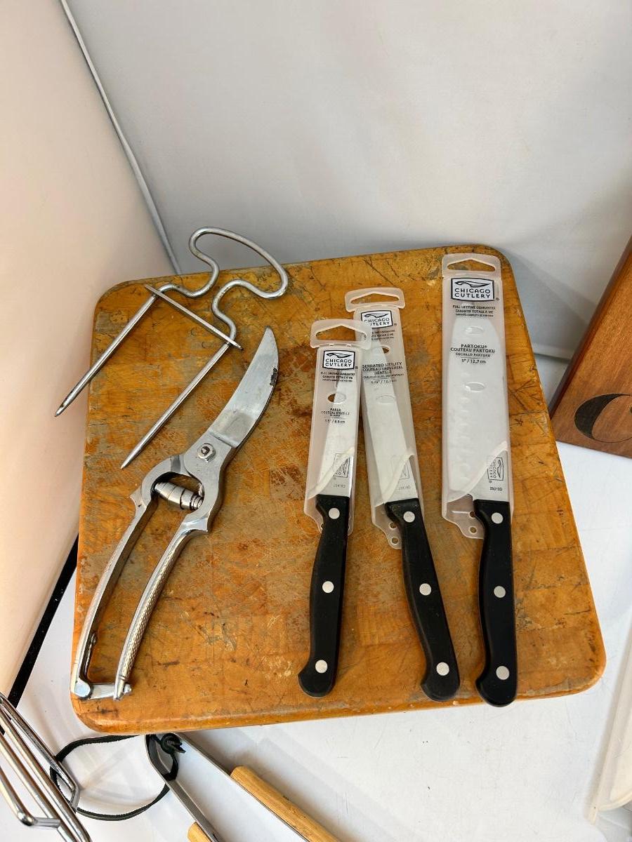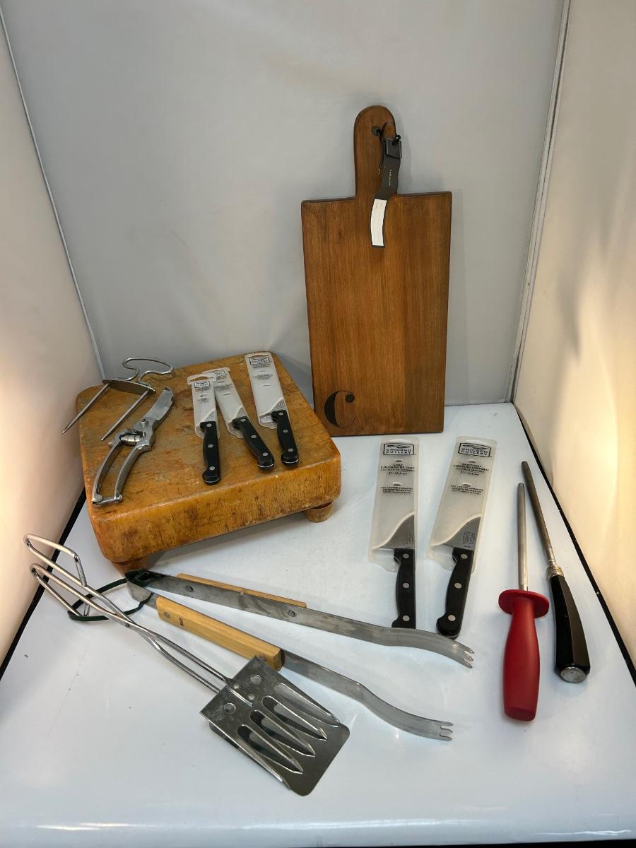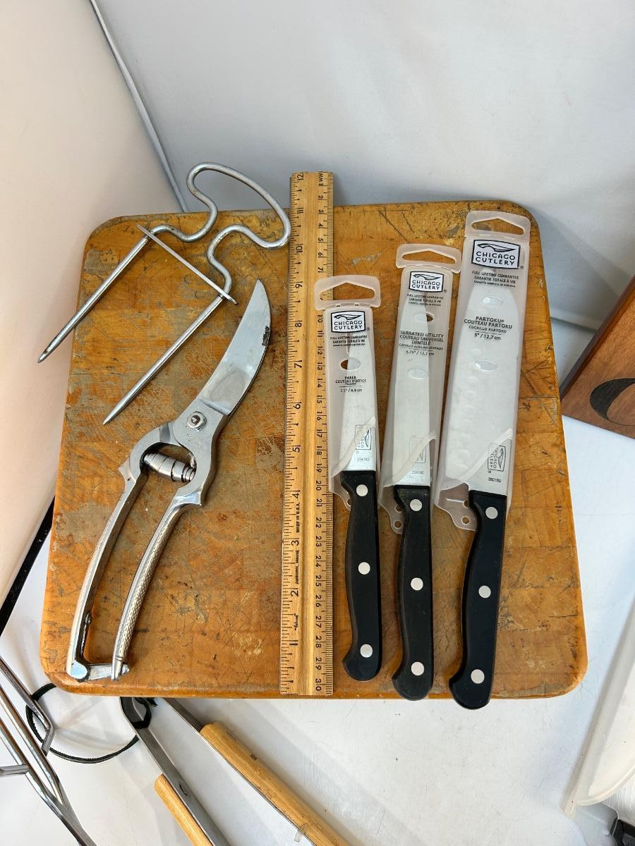 Cutting Board and Chicago Cutlery Knife Lot Bone Shears Grilling Tools Included