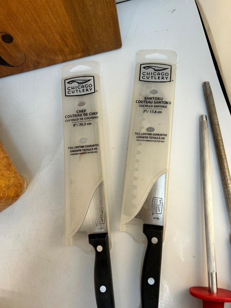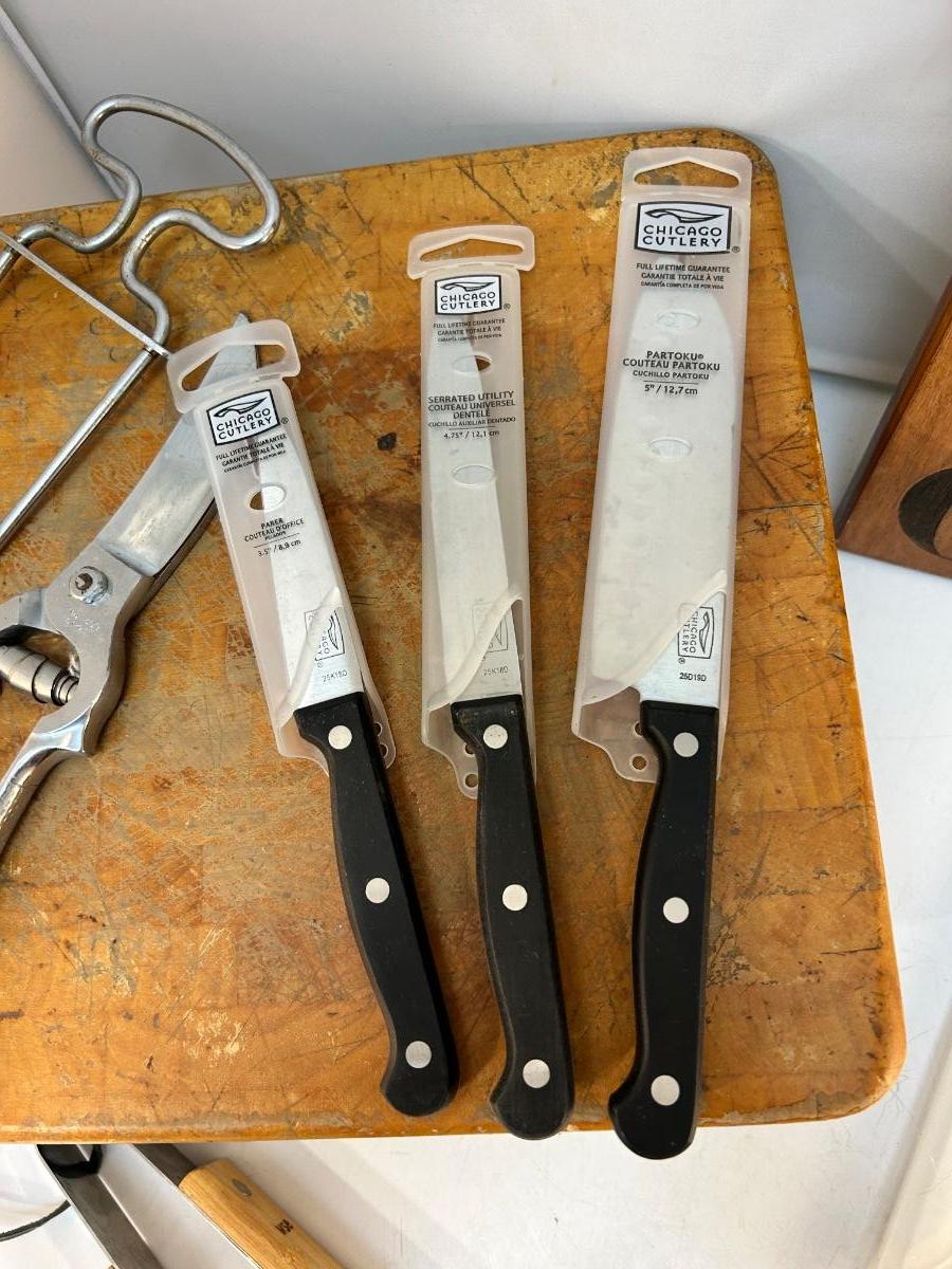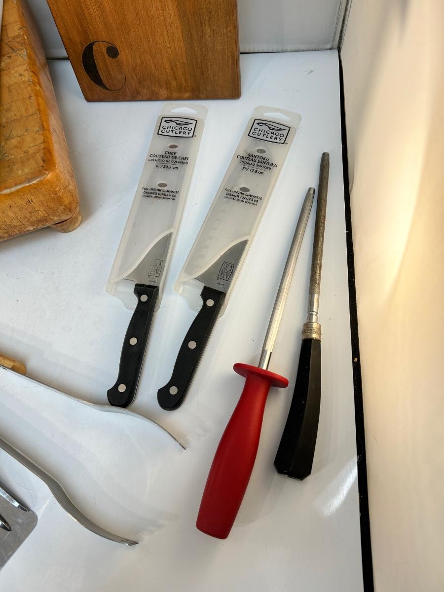 Cutting Board and Chicago Cutlery Knife Lot Bone Shears Grilling Tools Included