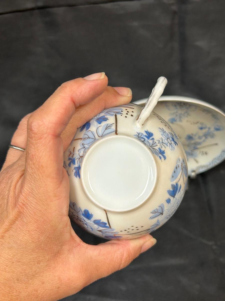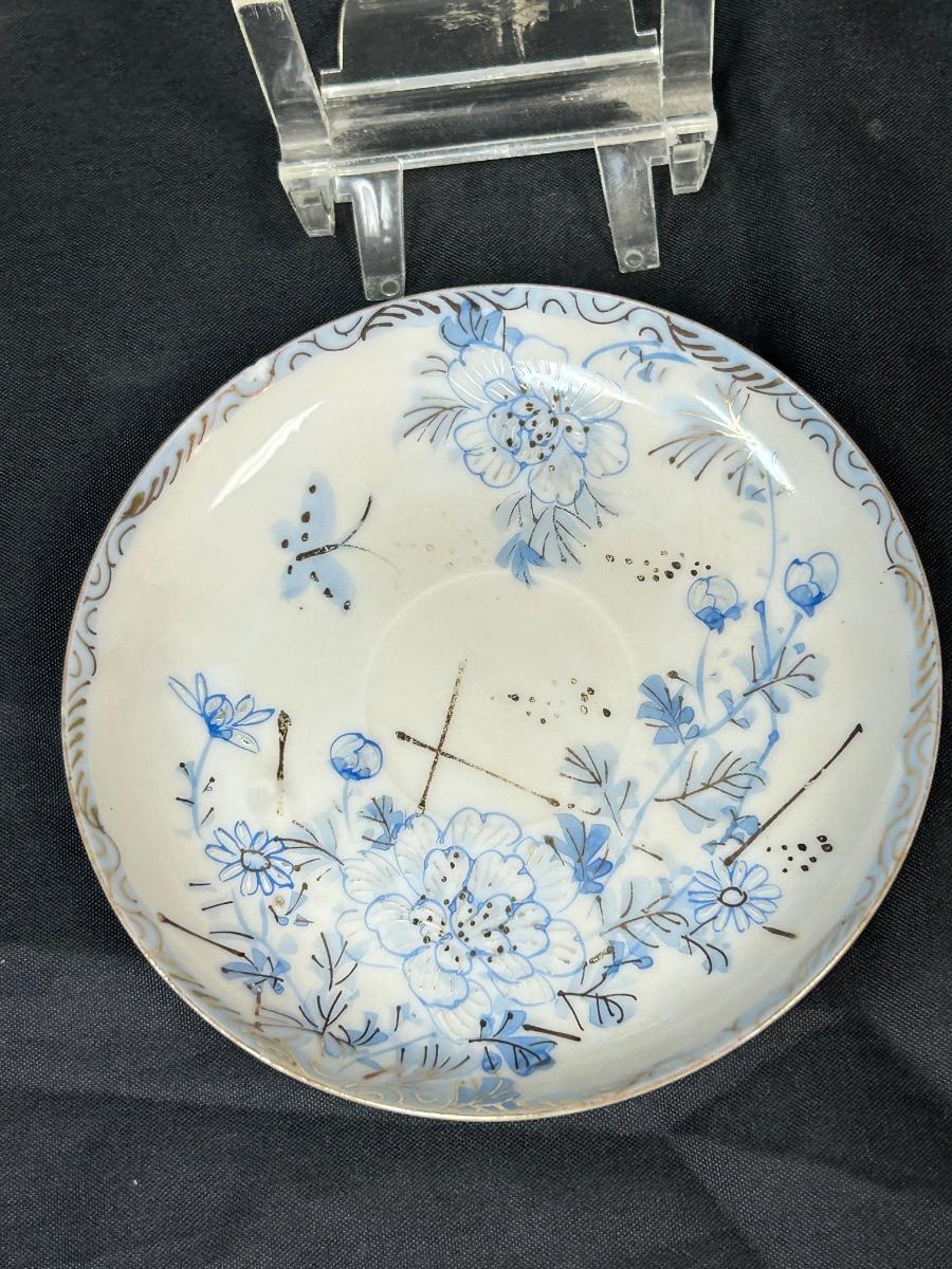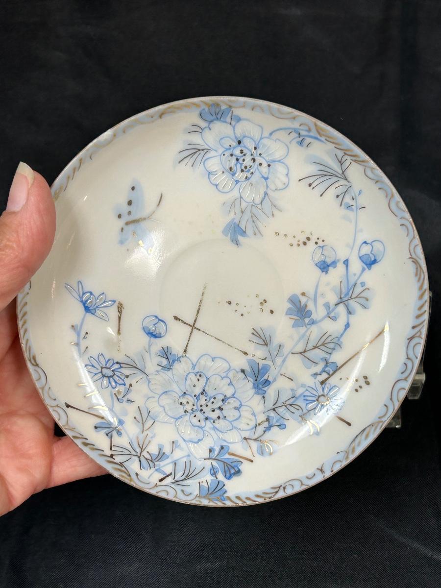 Vintage Delicate White with Blue Hand Painted Floral Pattern Teacup and Saucer. Unbranded. Very delicate, thin china. Beautifully painted flower with butterfly pattern. No damage noticed.