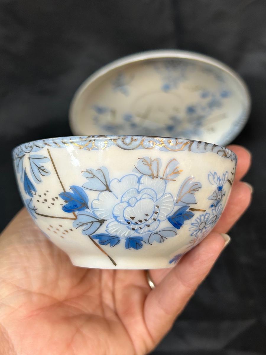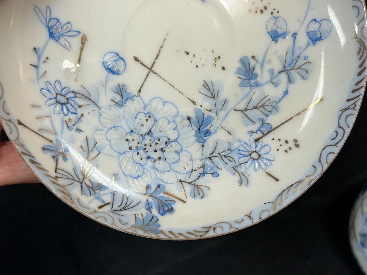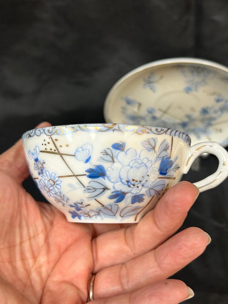 Vintage Delicate White with Blue Hand Painted Floral Pattern Teacup and Saucer