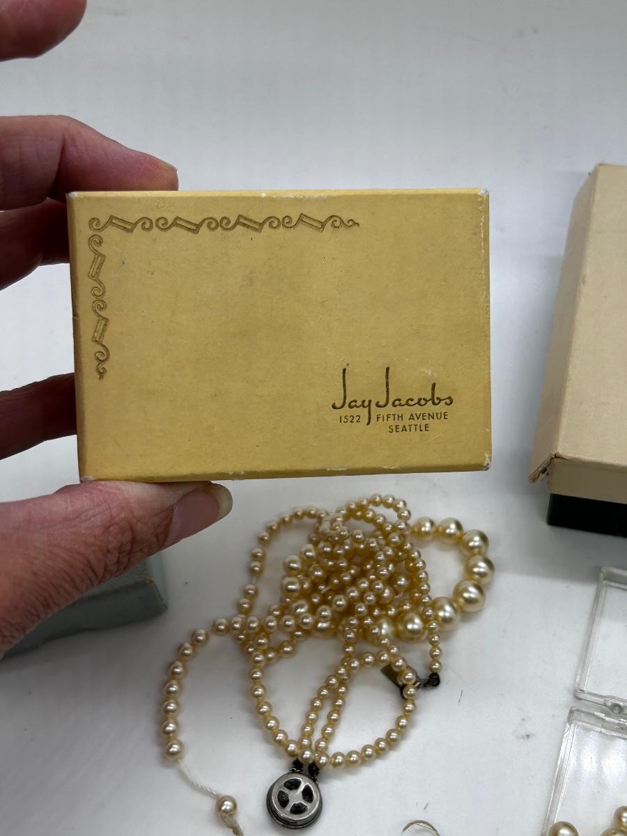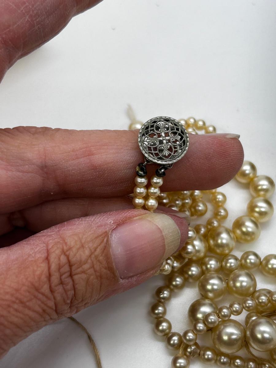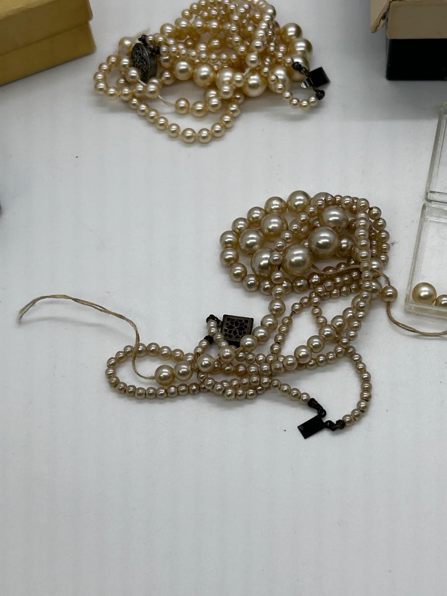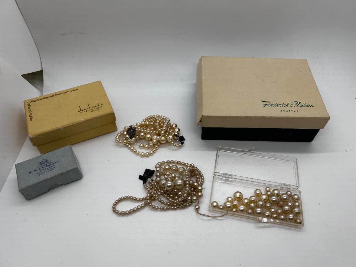 Mixed Lot of Faux Pearl Beaded Necklaces for Repair or Repurpose. Comes with vintage jewelry boxes. Both necklaces need to be restrung.