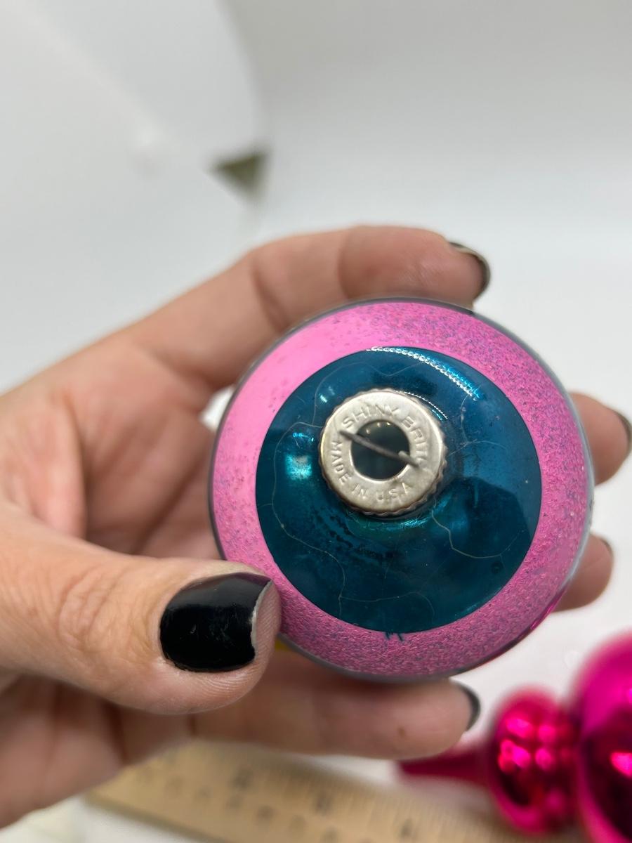 Mixed Lot of Vintage Blown Glass Christmas Holiday Tree Ornaments Funky Shapes. In good condition, no broken bulbs. Some Shiny Brite, some unbranded.