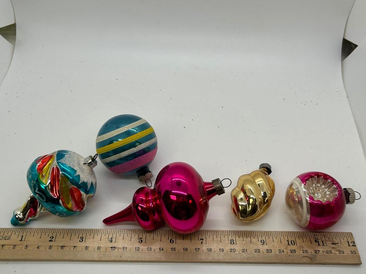 Mixed Lot of Vintage Blown Glass Christmas Holiday Tree Ornaments Funky Shapes