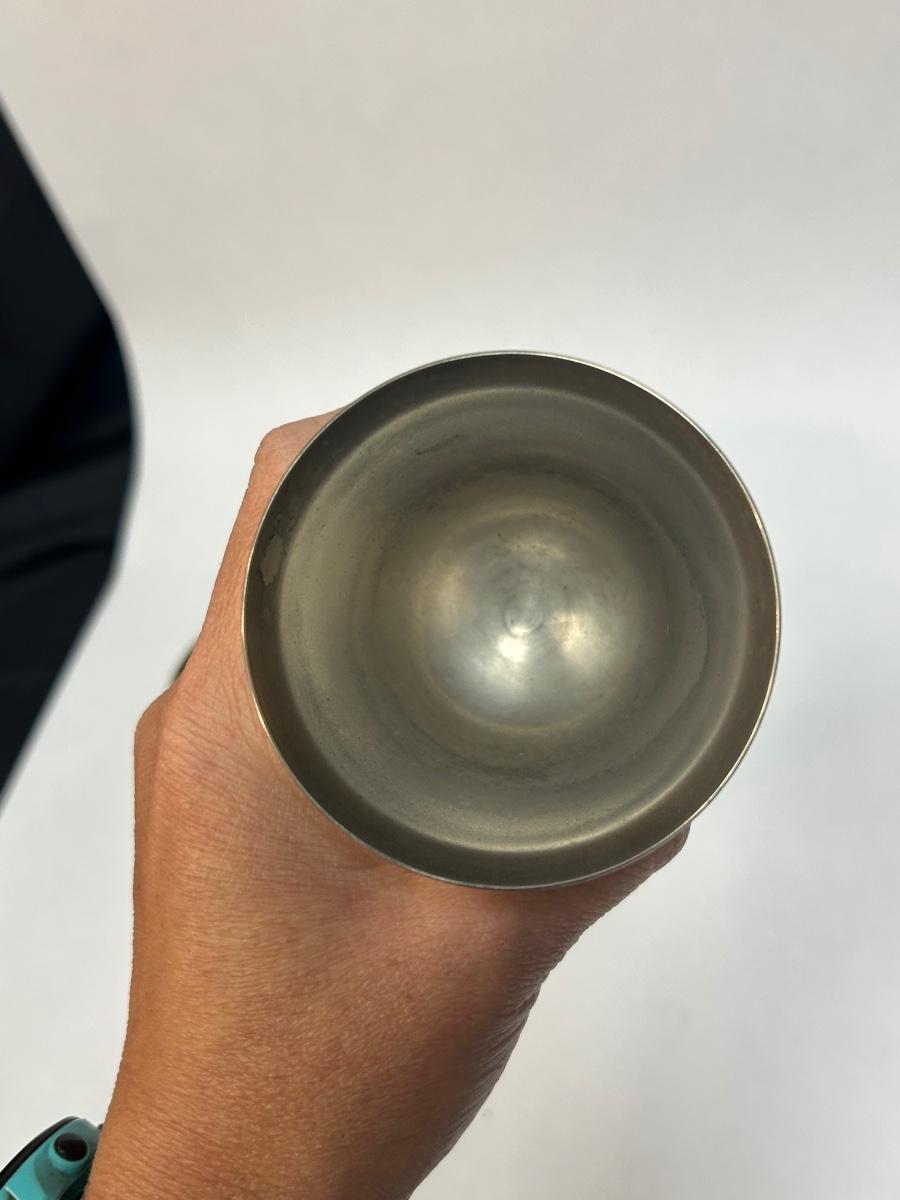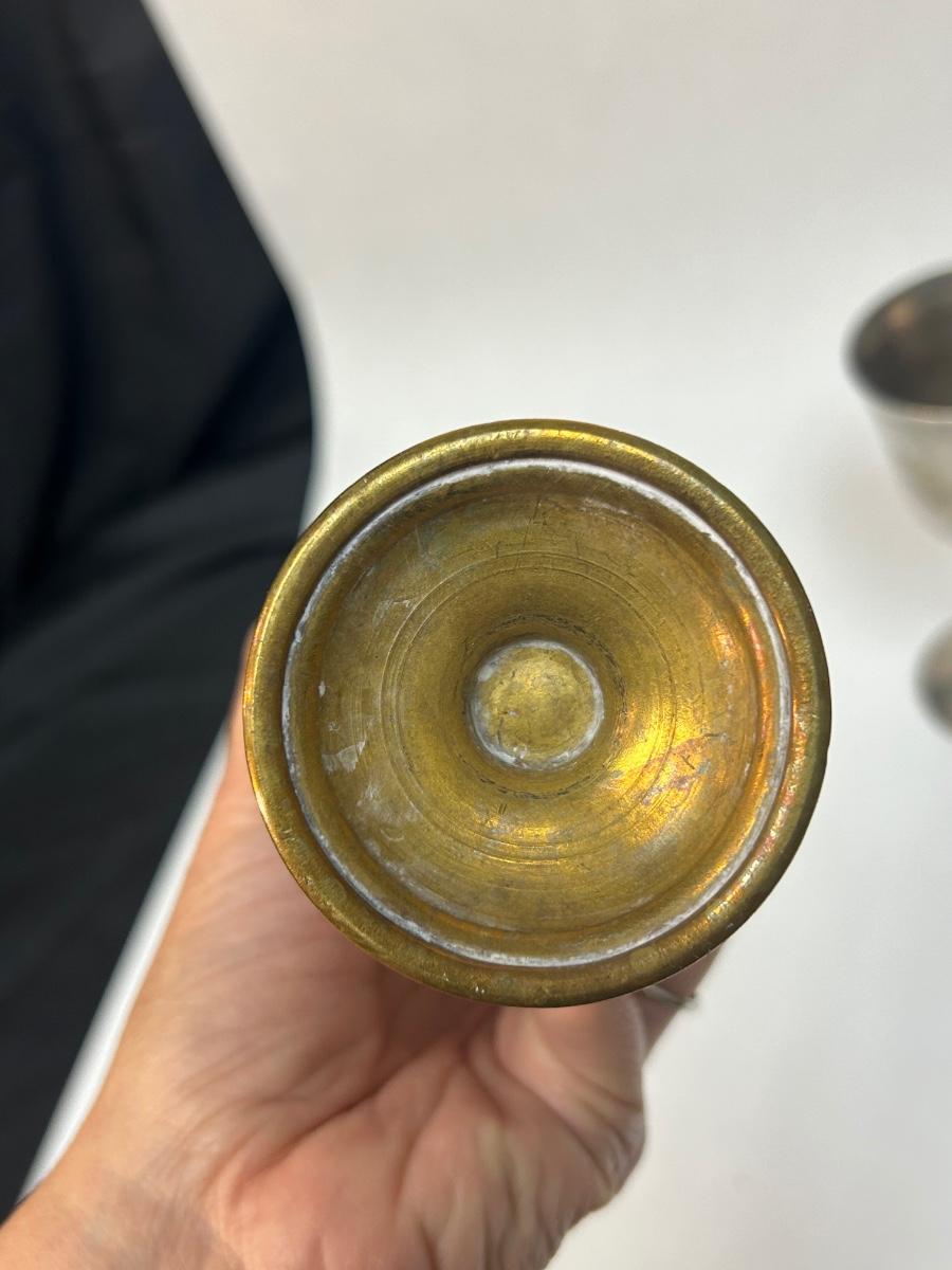 Pair of Vintage Metal Chalice Goblets Stemware Drink Glasses Brass Silver Plate