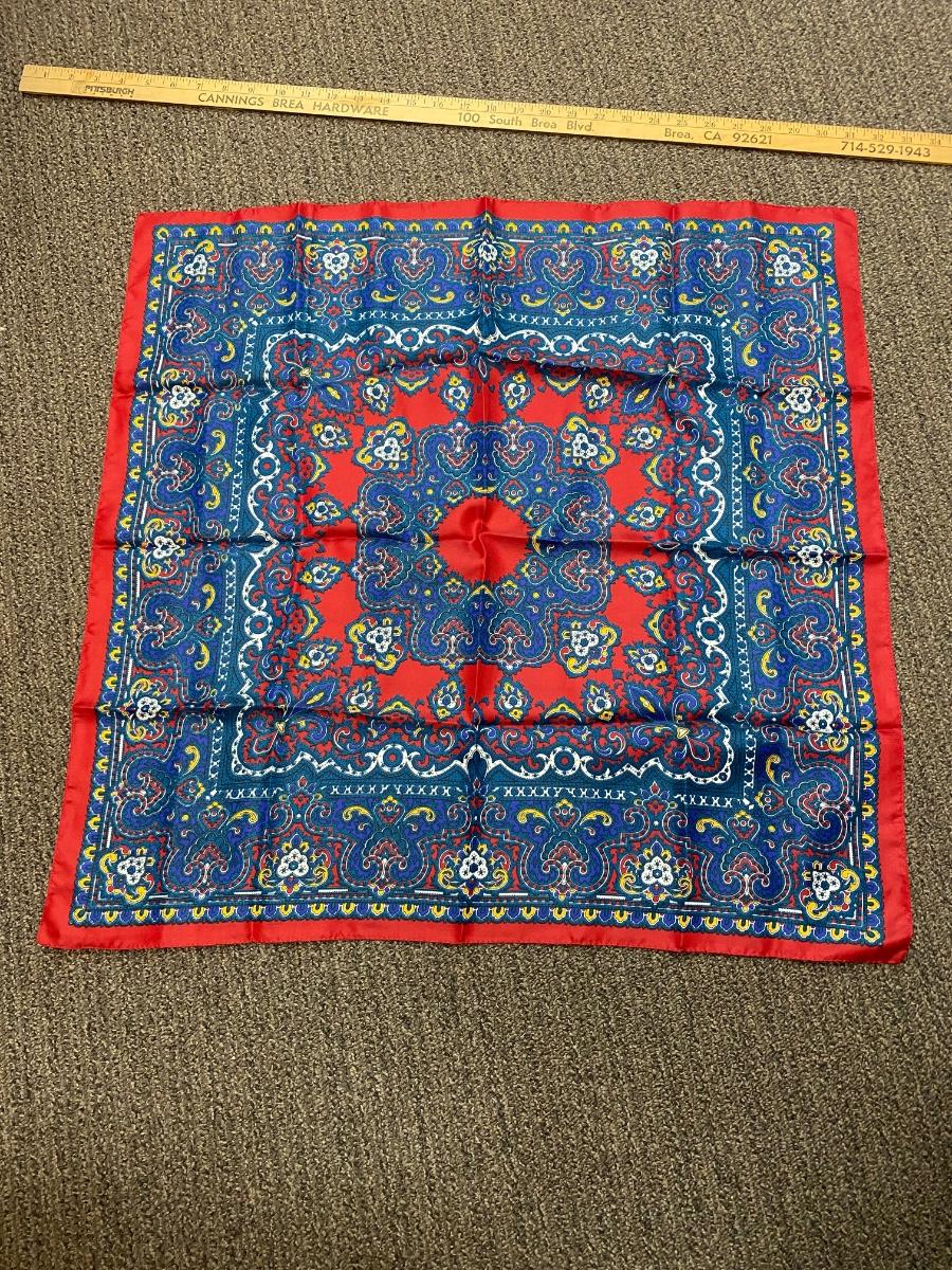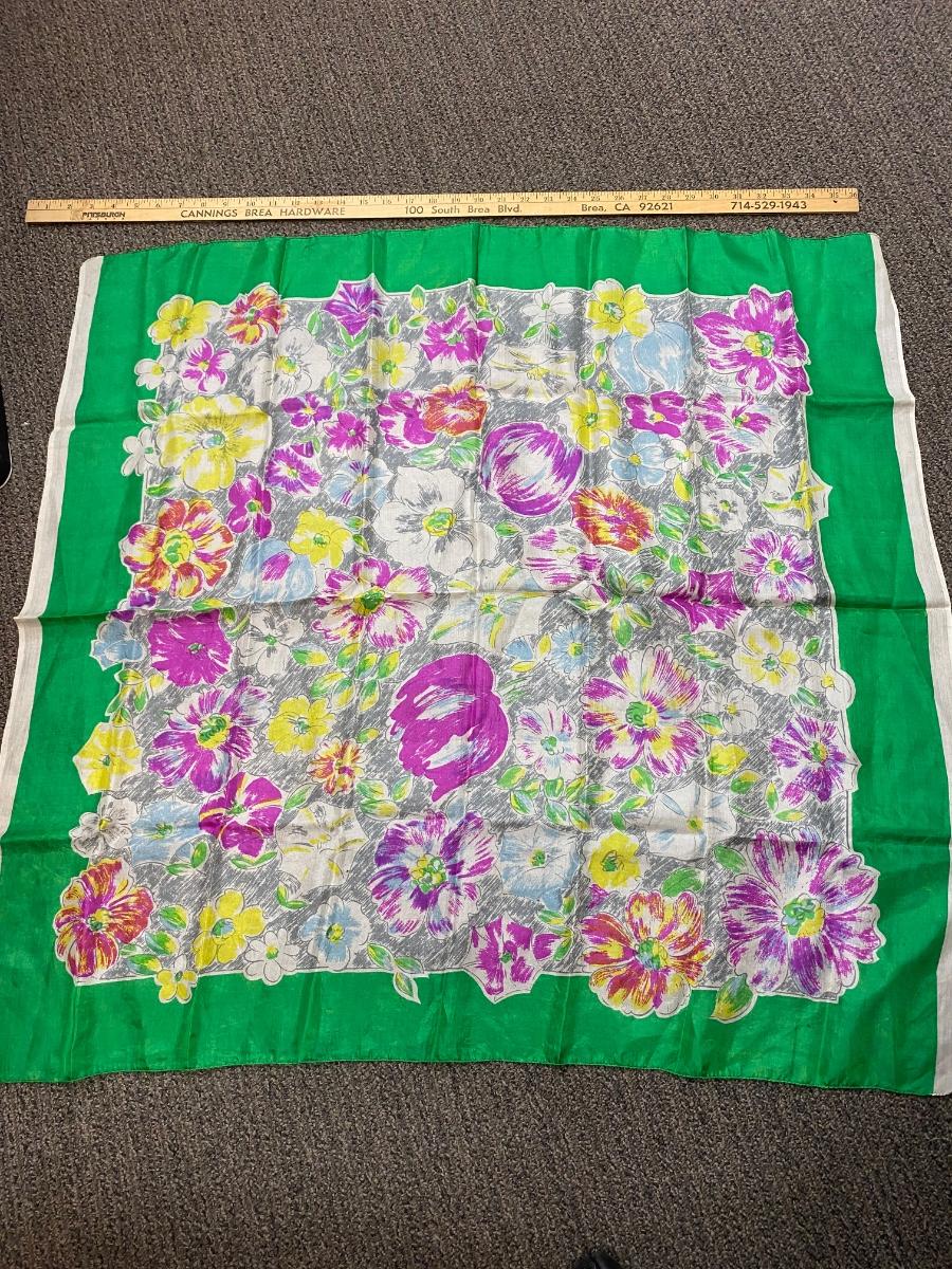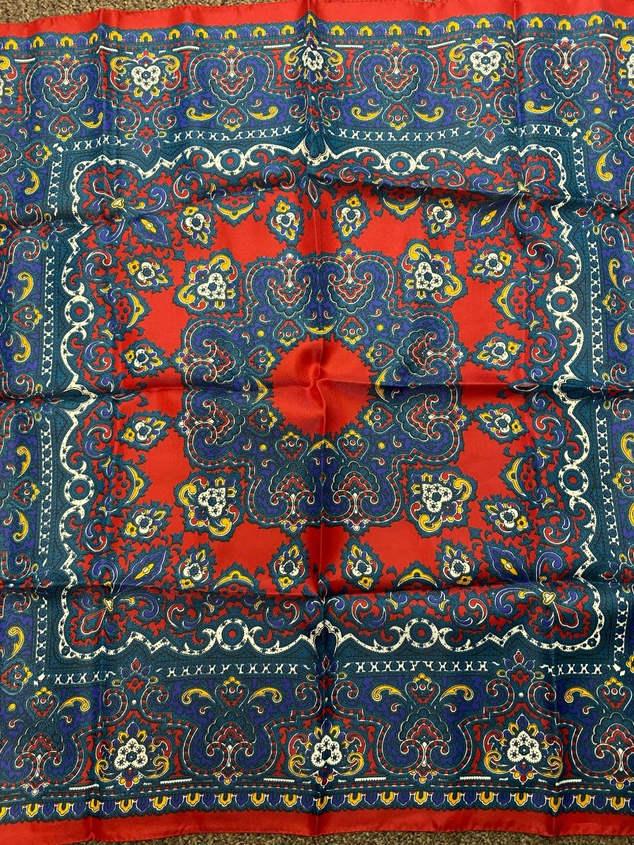 Lot of 4 Vintage Bright Color Silk Rayon Head Neck Scarf Fashion Scarves. In good condition. Each different. All close to 36" size.