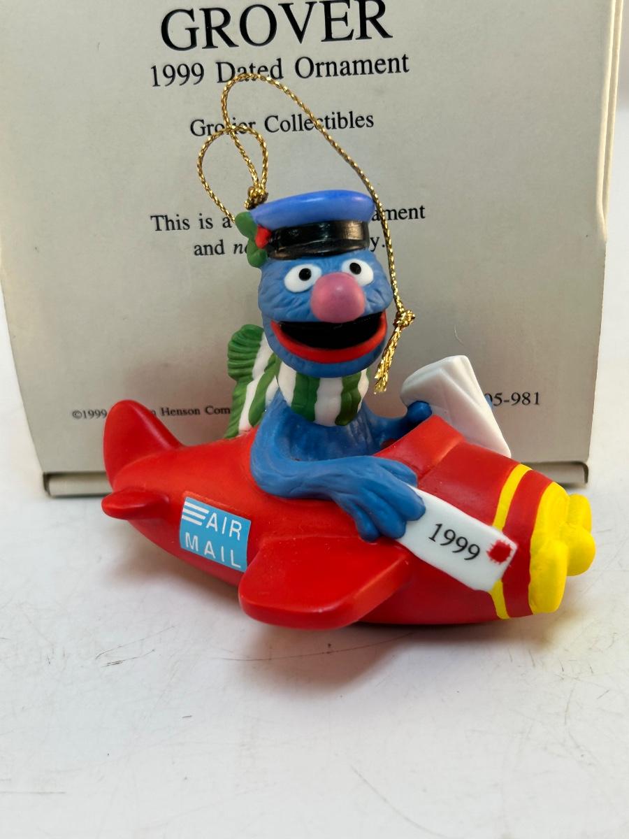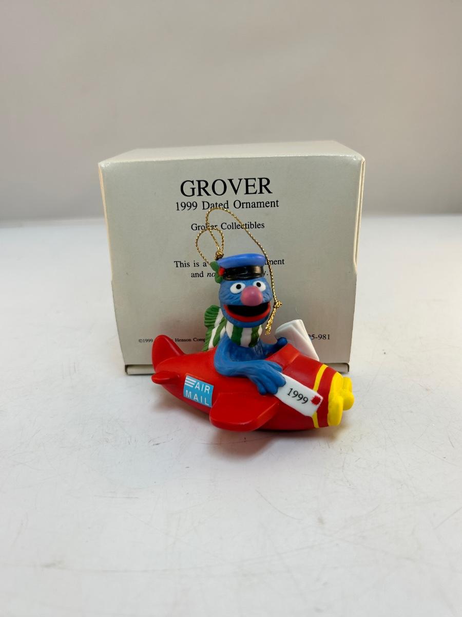 1999 Grolier Sesame Street Character Christmas Holiday Tree Ornament Grover. Porcelain ornament in original box. Under 4" size.
