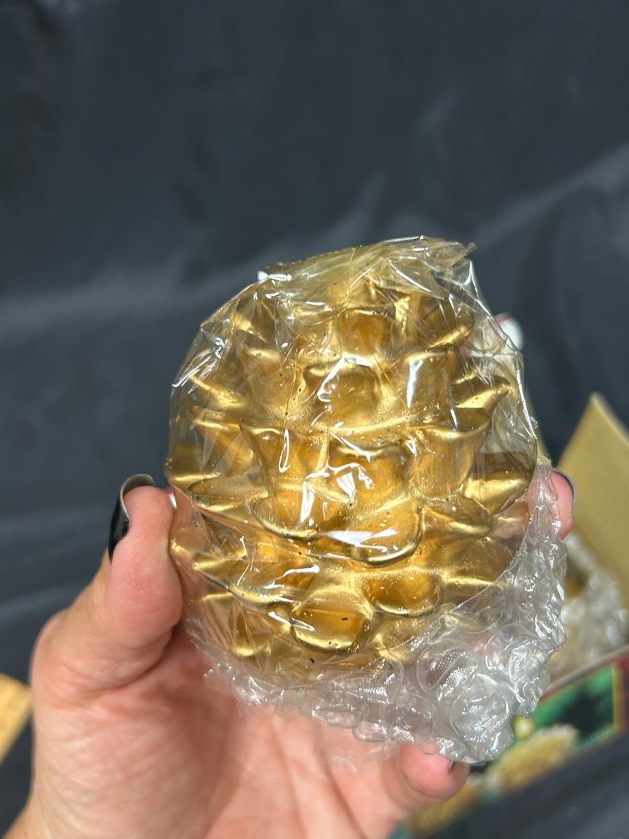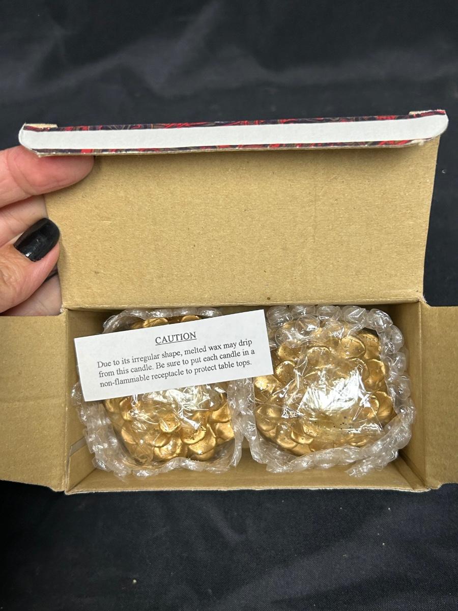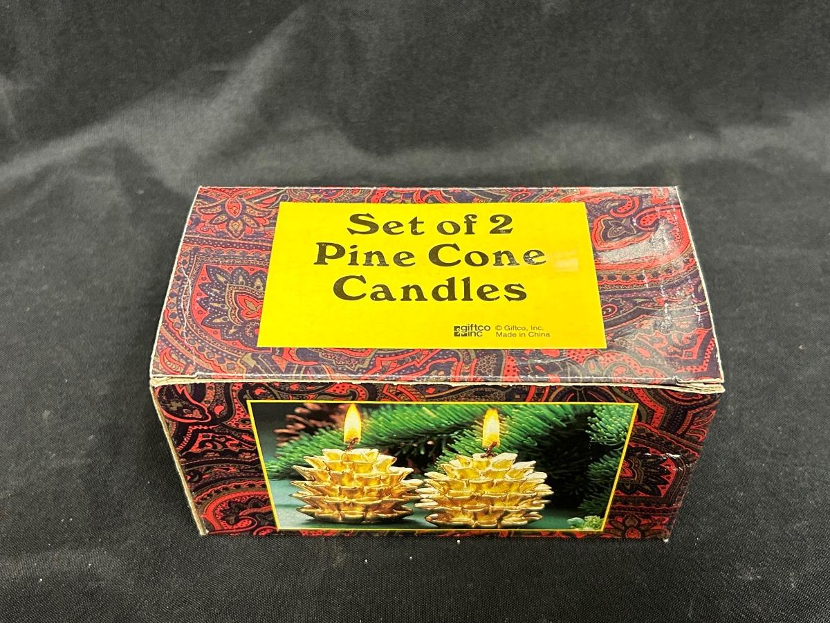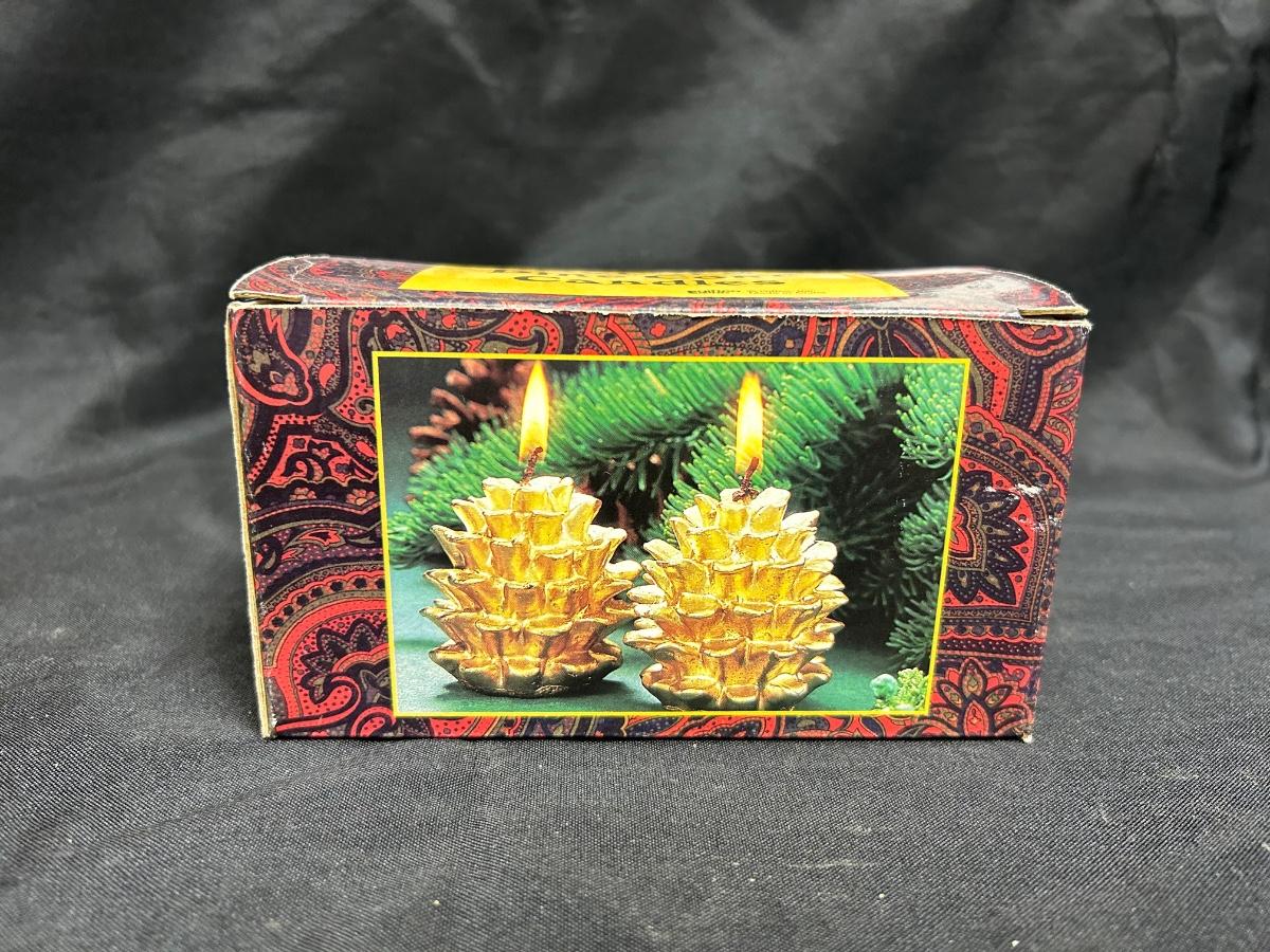New in the Box Gold Metallic Finish Pinecone Candles. New, unused candles, still in plastic.
