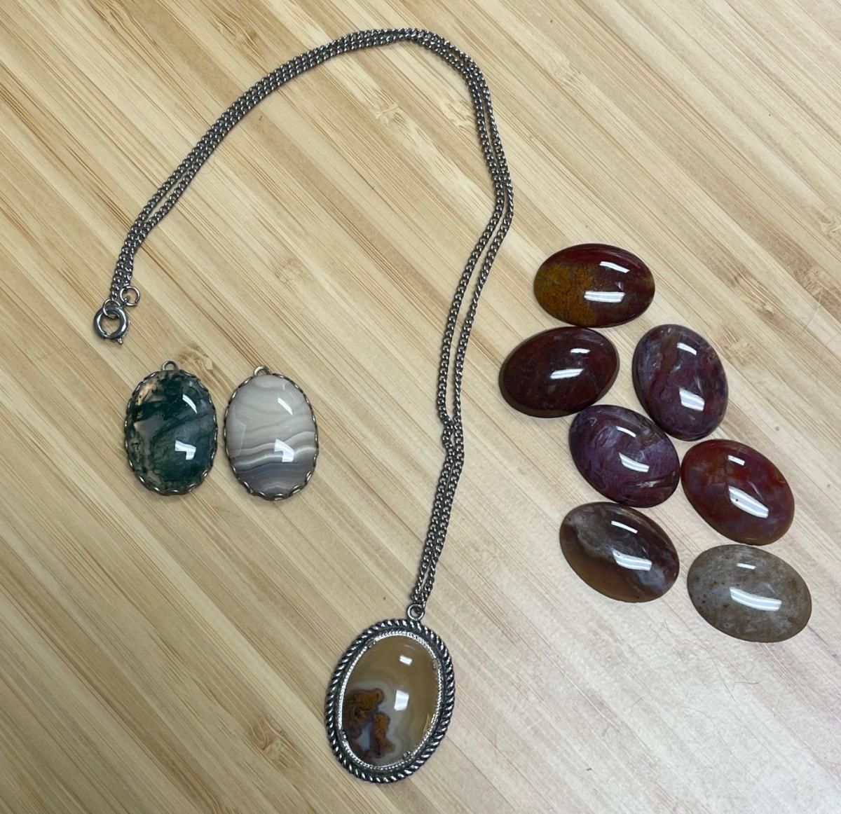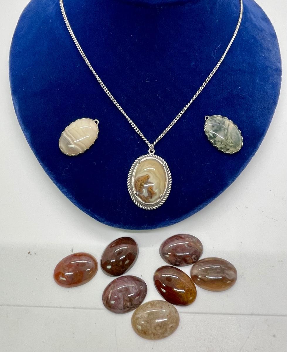 Polished Stone Pendant Charm Necklace with Multiple Stones Included. Good condition.
