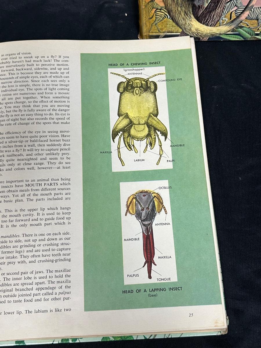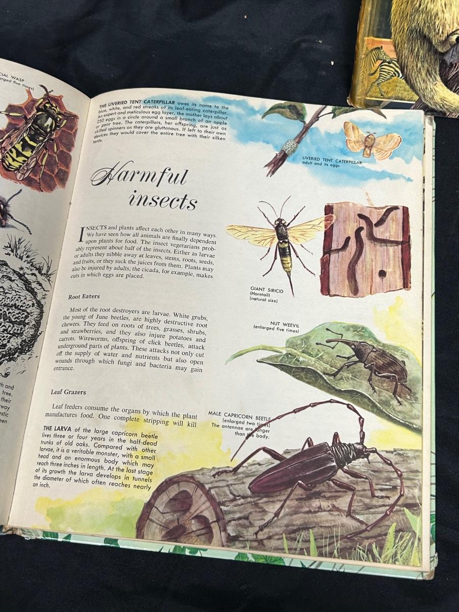 Pair of Vintage Children's Illustrated Books Insects and Mammals 1960s. Both have signs of age to the coveres and spines. A lot of color illustrations, great for all ages.