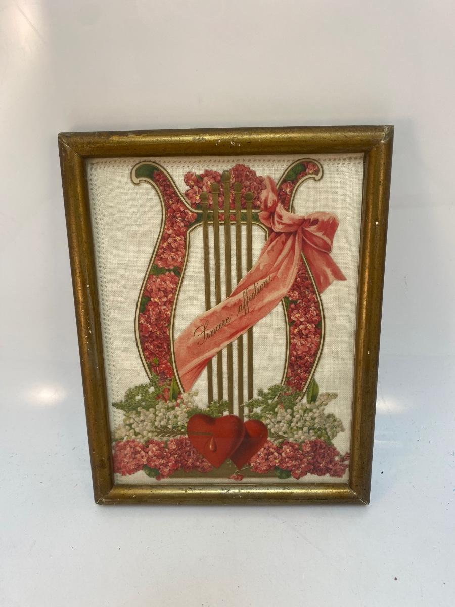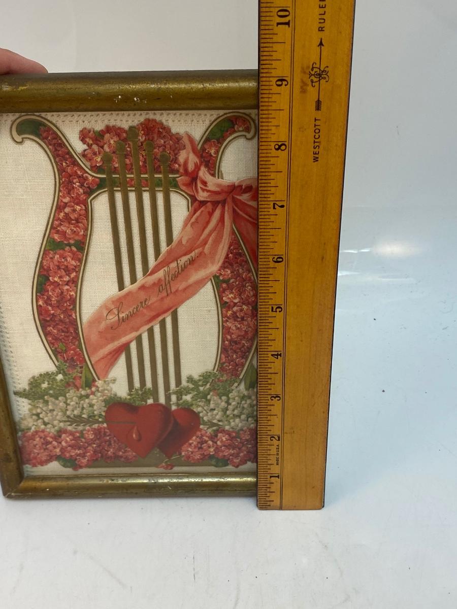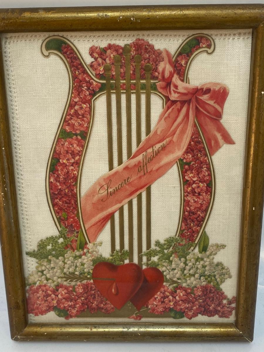 Framed Vintage Antique Valentines Love Card on Linen with Note Attached