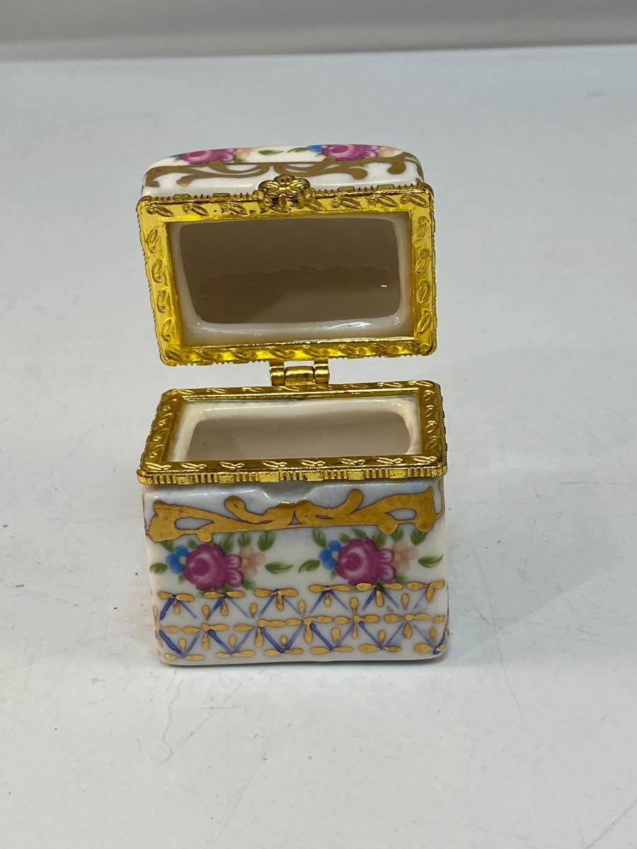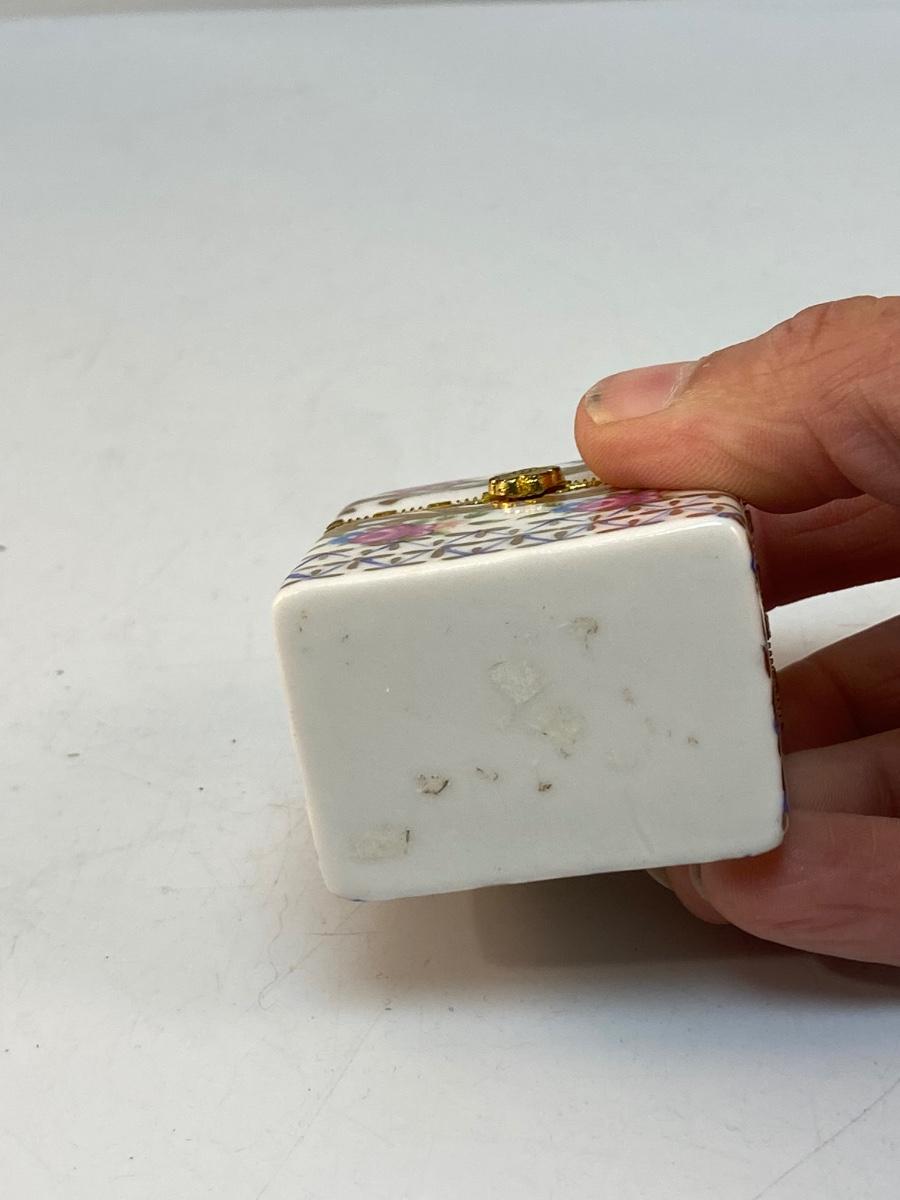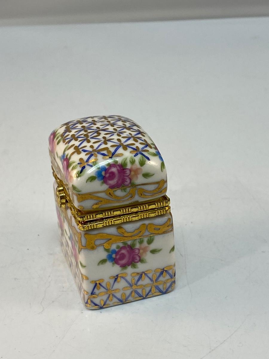 Small Vintage Floral Patterned Porcelain Trinket Box with Hinged Lid