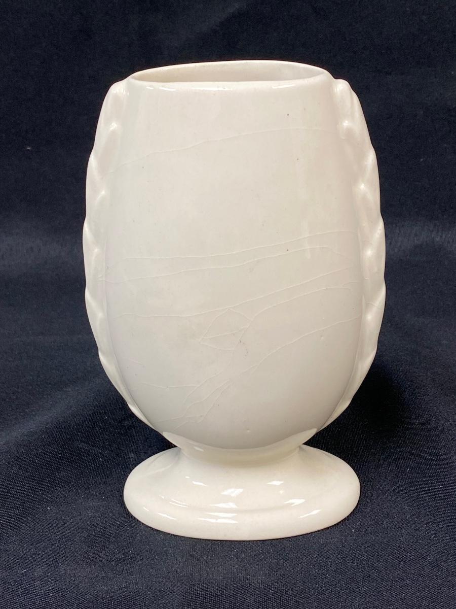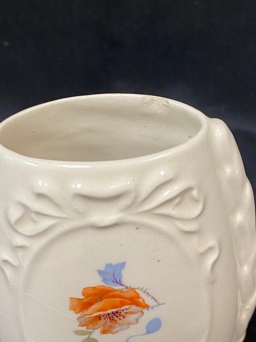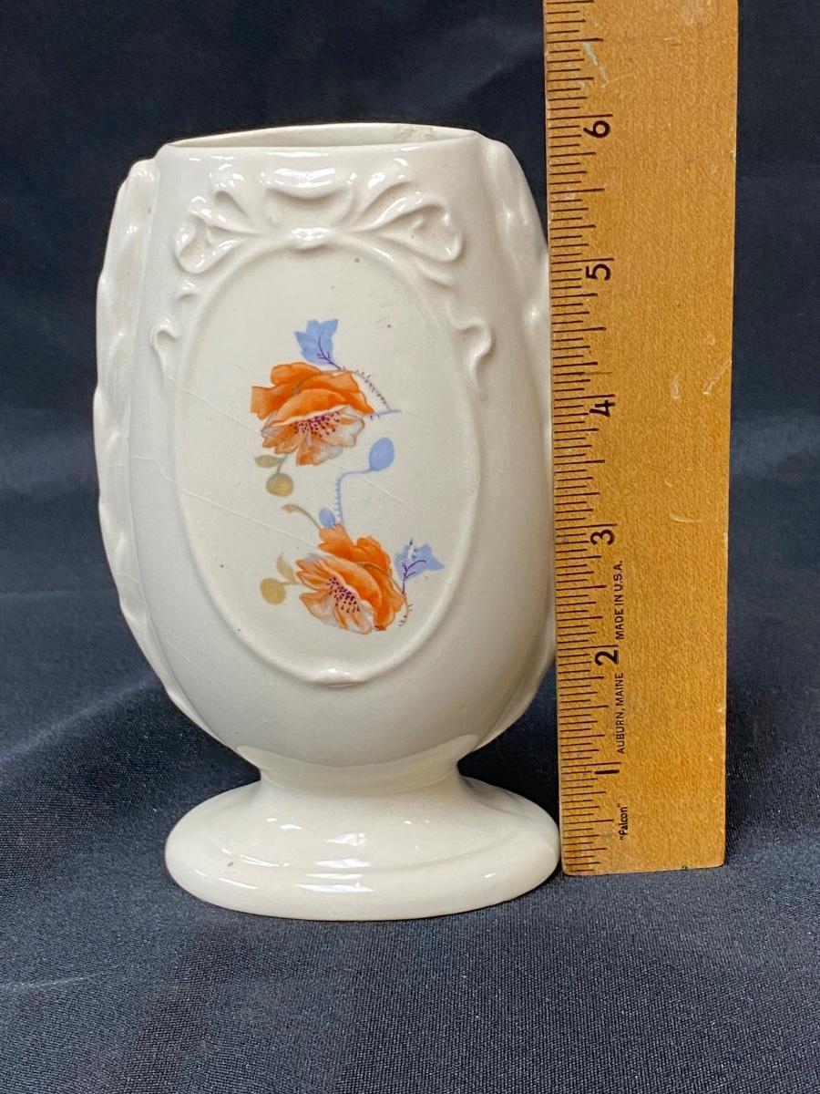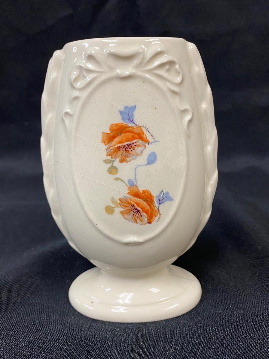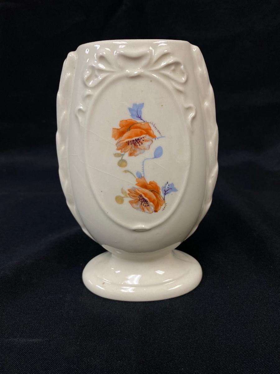 Vintage Off White Flower Print Ceramic Porcelain Vase Urn. In vintage condition. There is crazing and a very small chip on the inside lip of opening.