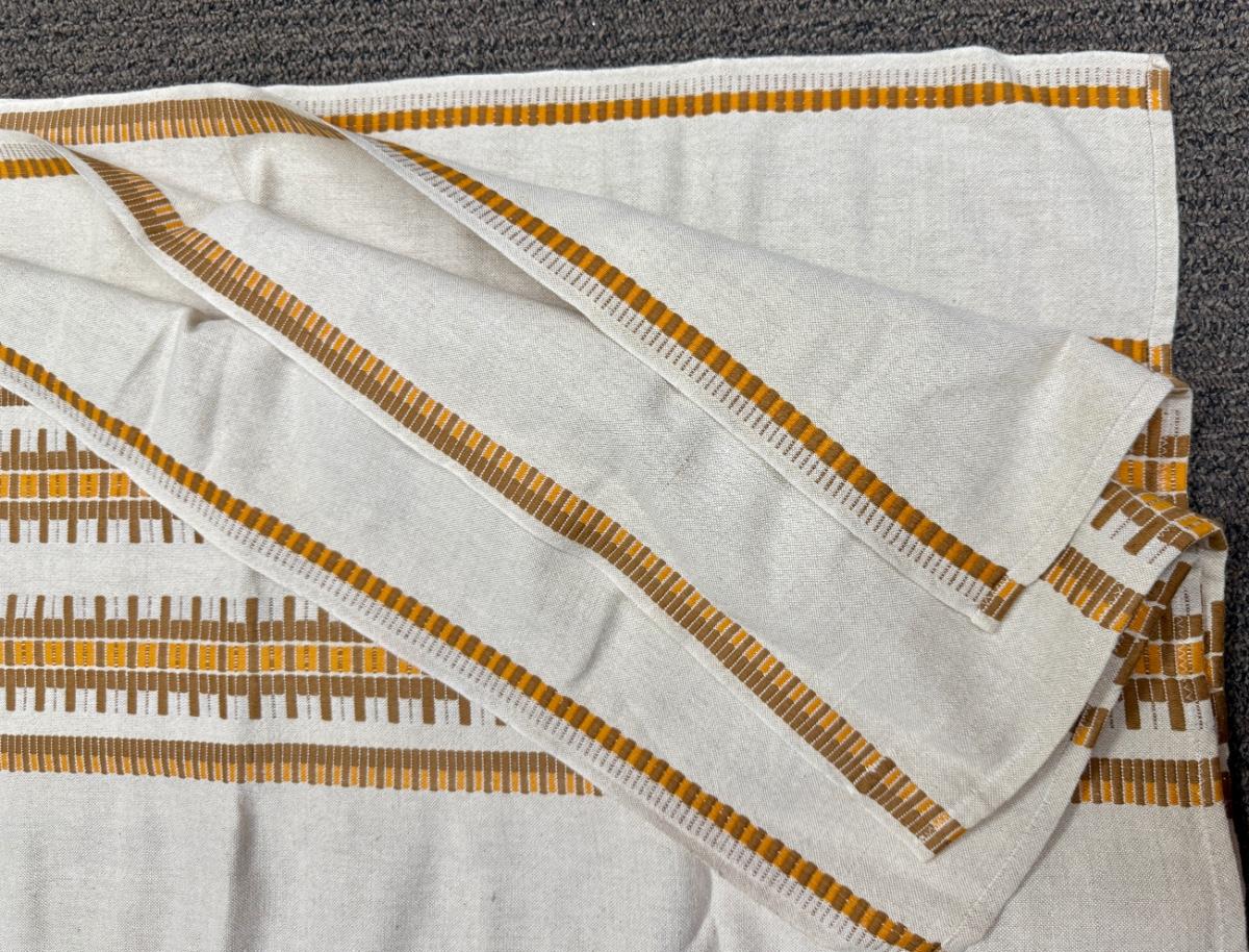 Vintage 60's-70's Woven Cotton Bedspread stripe pattern 116" x 158" full size