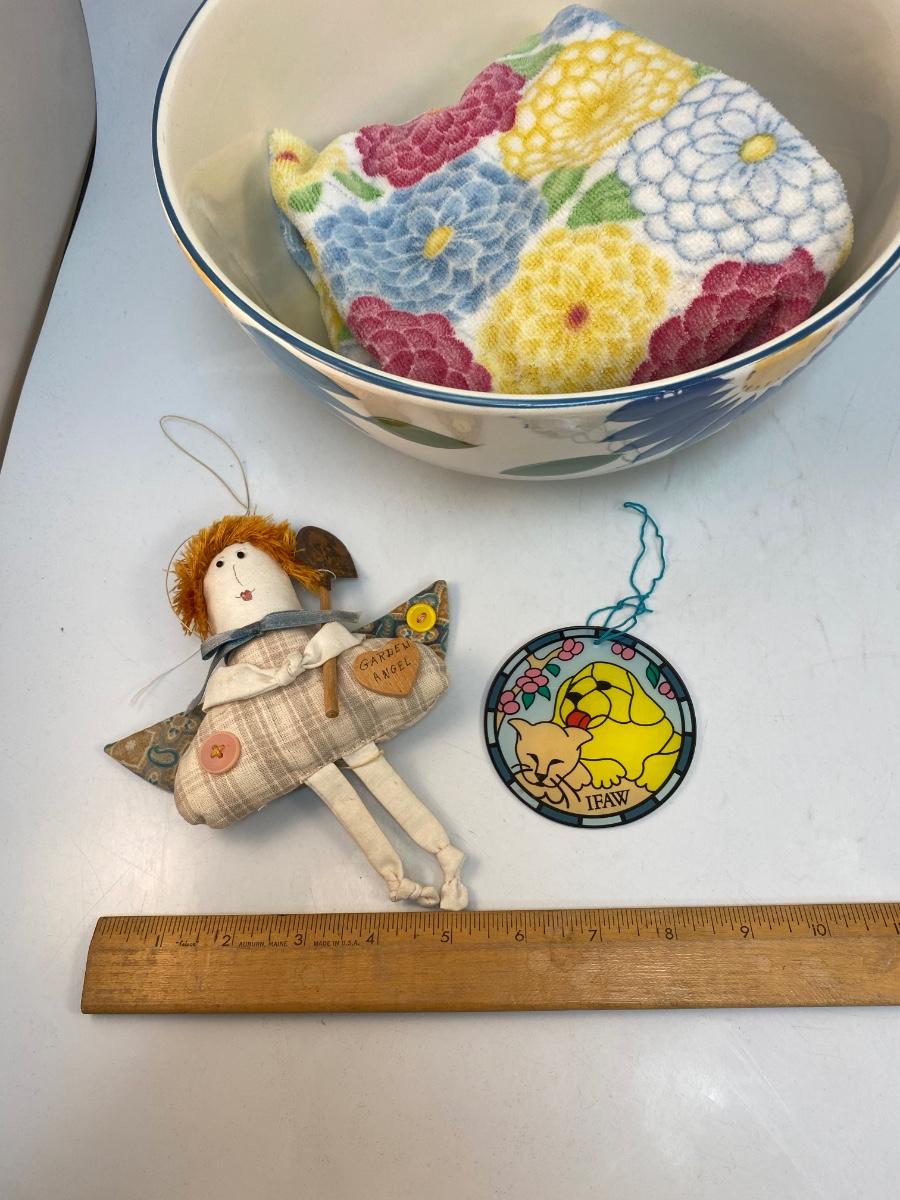 Mixed Lot of Colorful Floral Serving Bowl Dish Towel Gardening Angel Animal Ornament