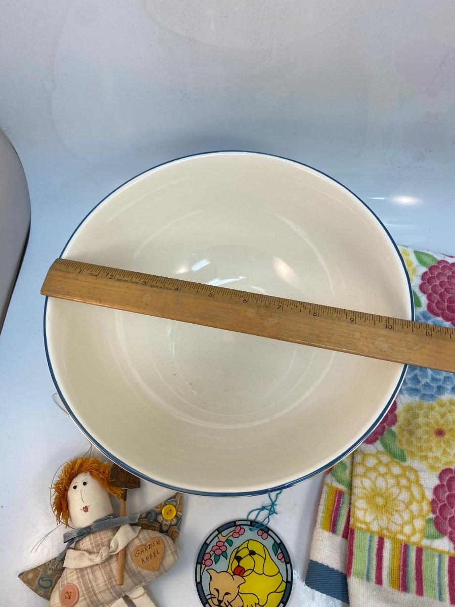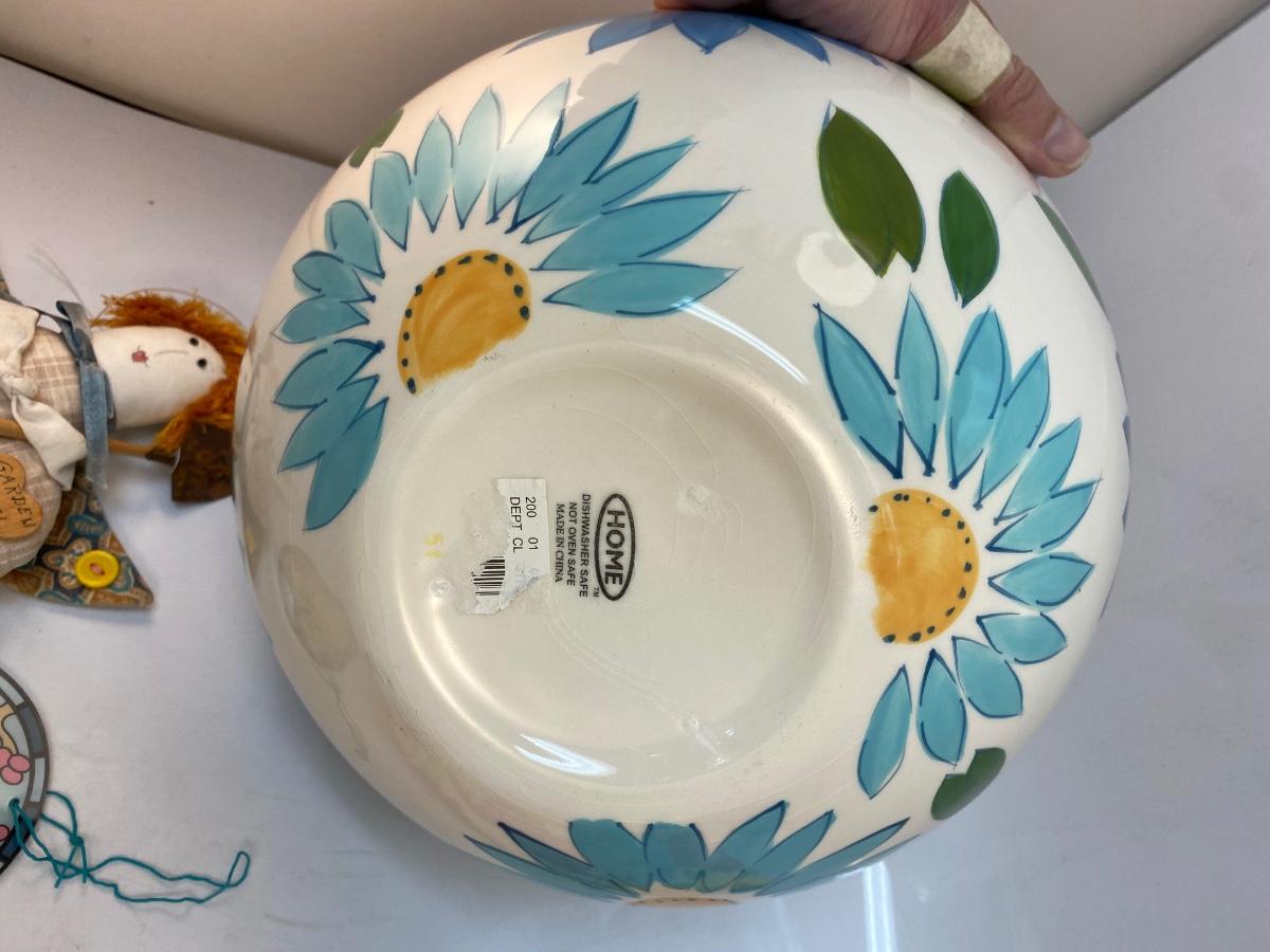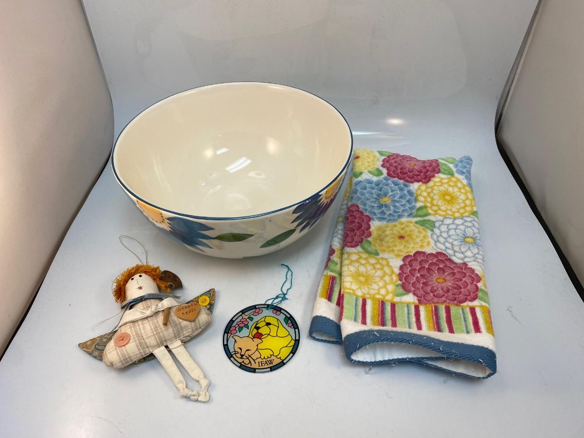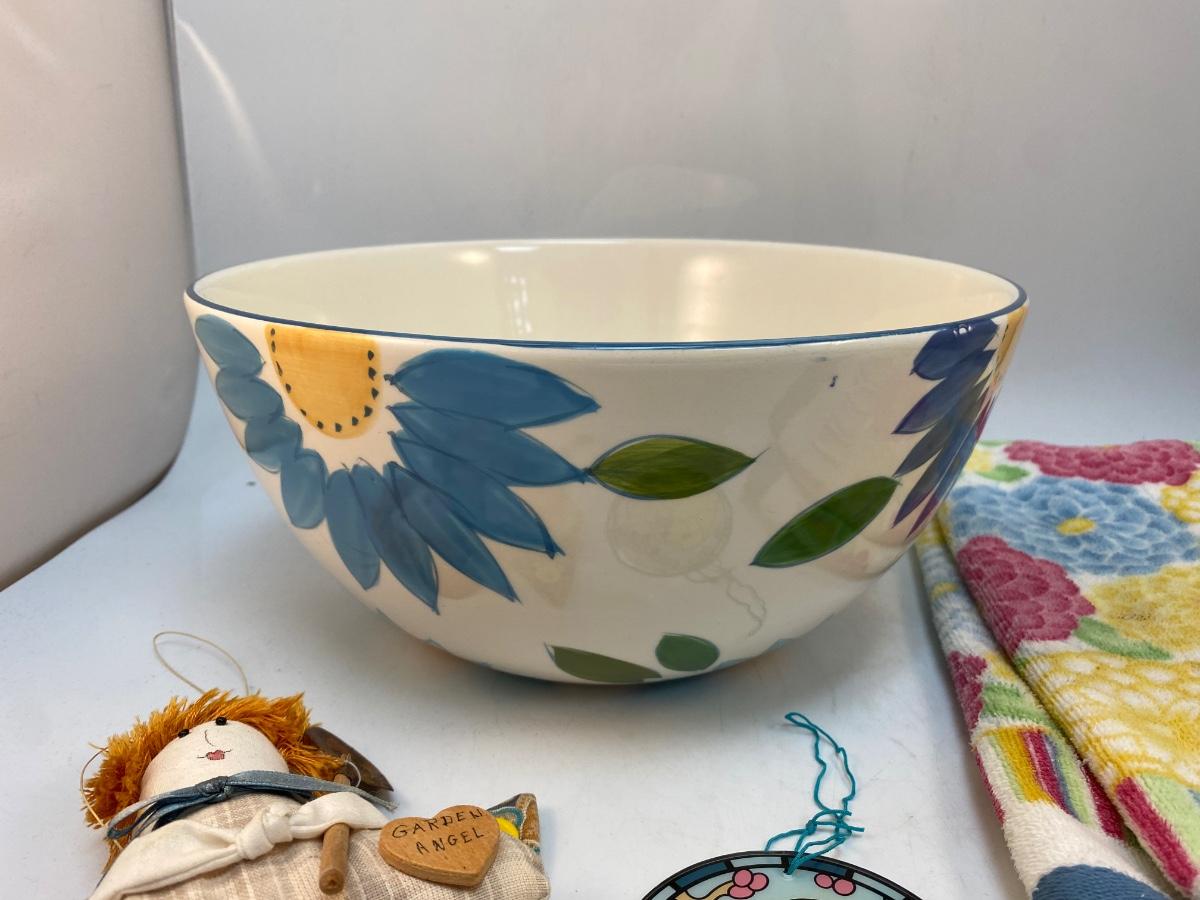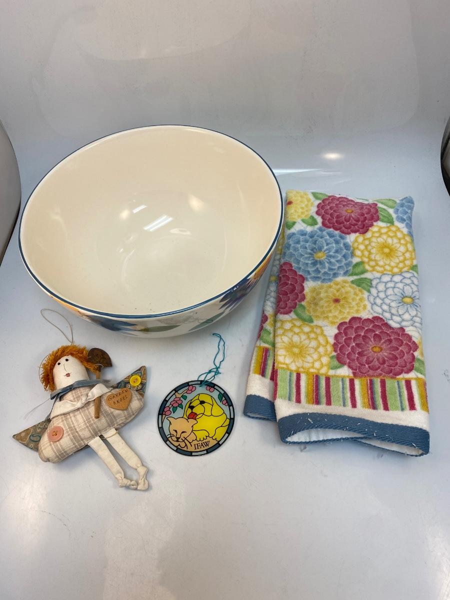 Mixed Lot of Colorful Floral Serving Bowl Dish Towel Gardening Angel Animal Ornament. Good previously used or displayed condition.