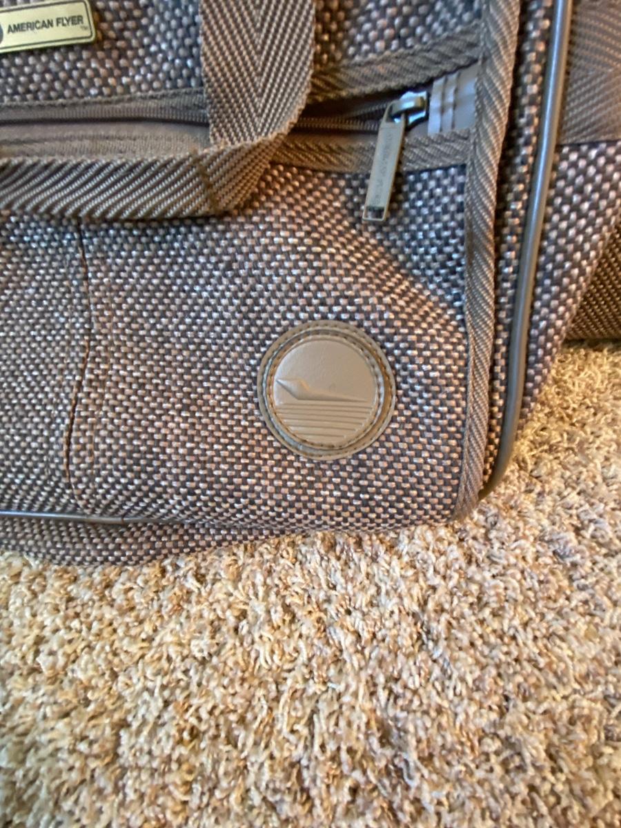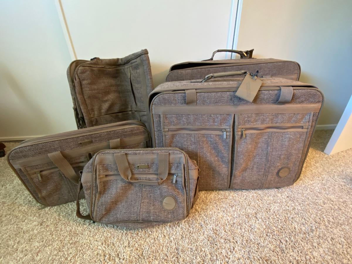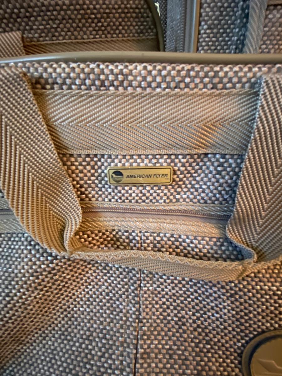 Vintage 5 Piece American Flyer Luggage Set. In good used condition. The largest piece does have wear to the lower corner.