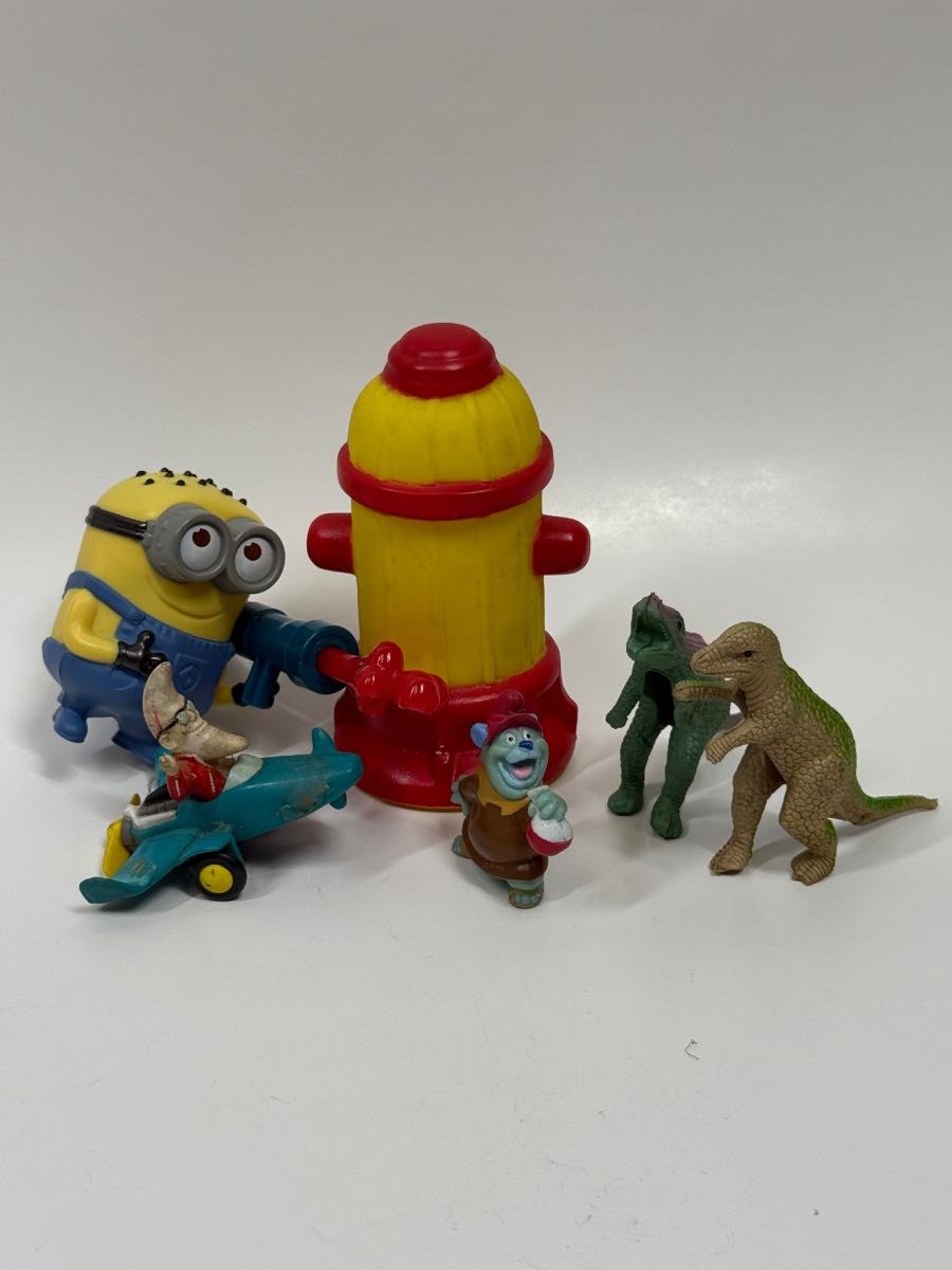 VIntage Toy Lot - happy meal sized toys - Minion, Dinosaurs, Fire hydrant, etc