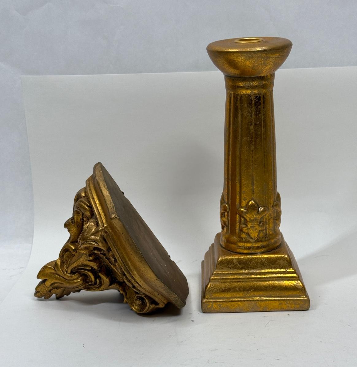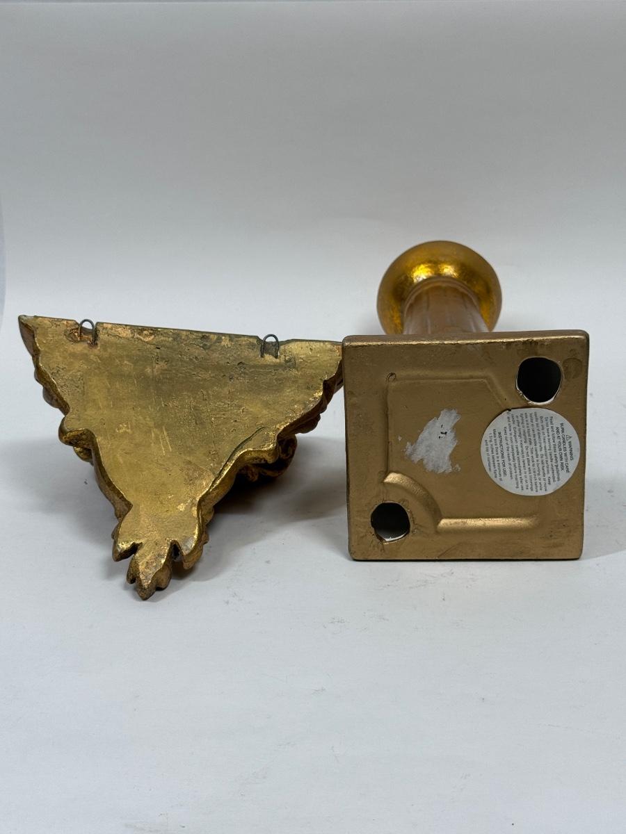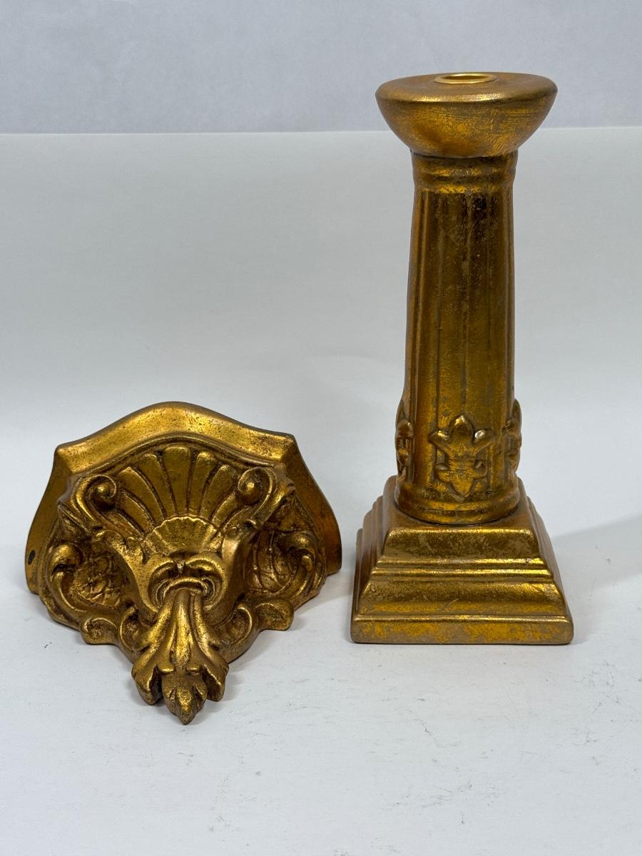 Gold-Painted Candlestick and Wall Sconce Shelf