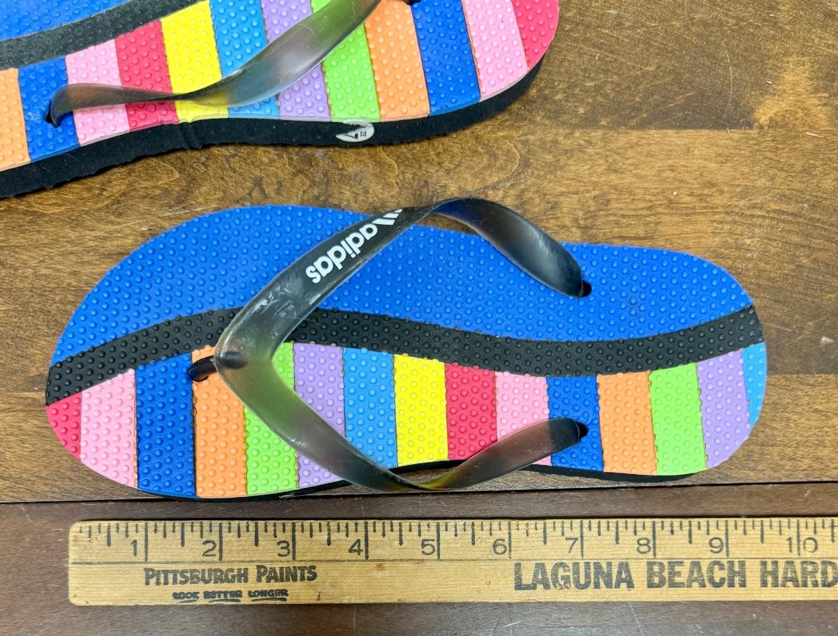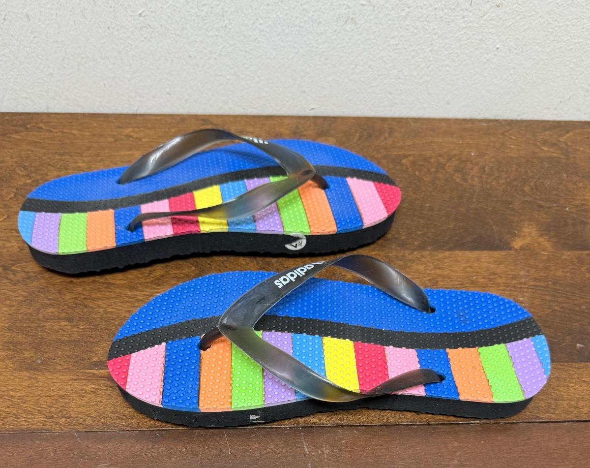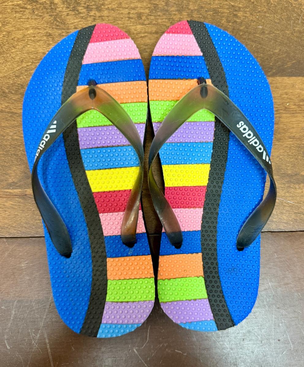 Adidas Sandals Flip-Flops Rainbow size 7/8 Unisex Thongs Multicolored in like new condition without tag