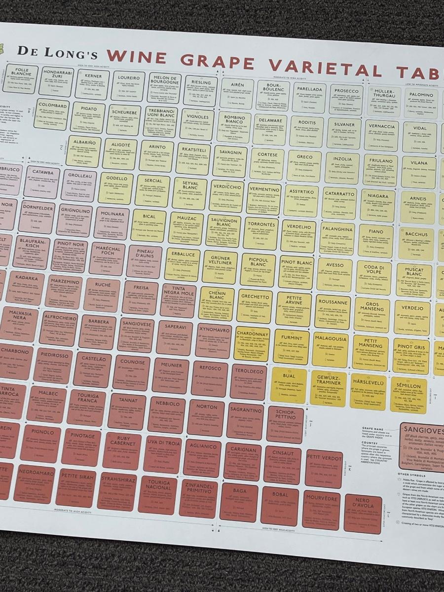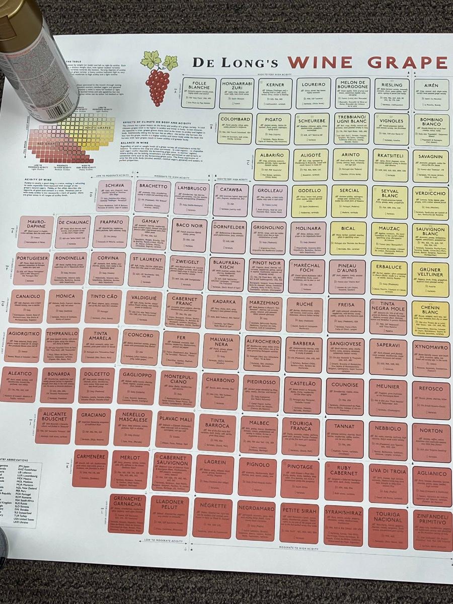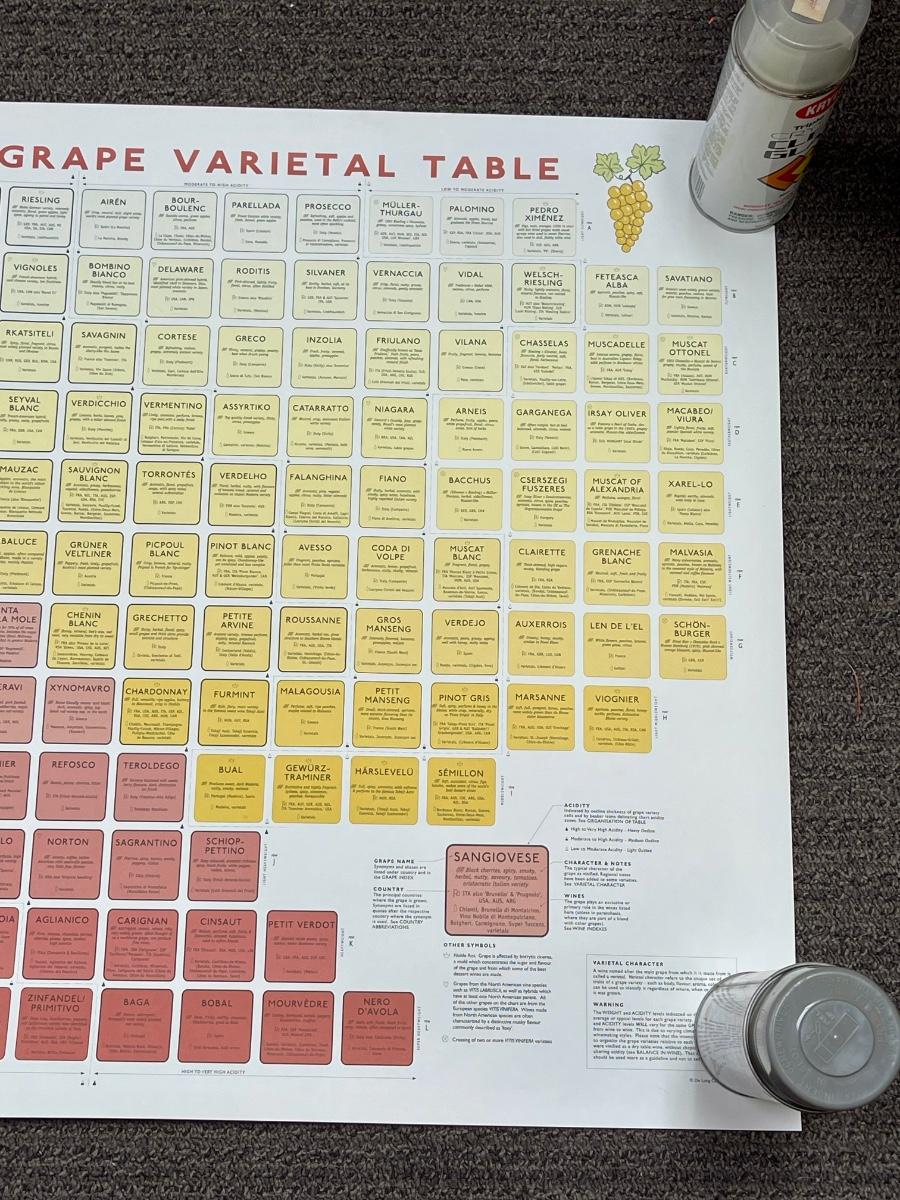 Wine Varietal Table Map / Poster Reds and Whites and everything in between