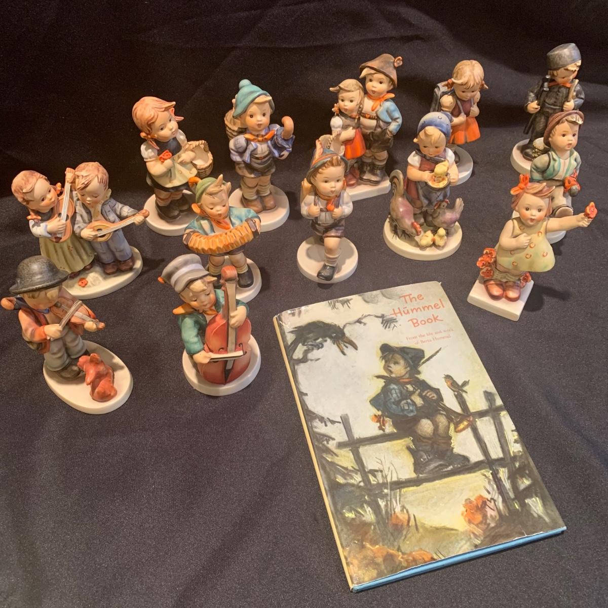 Selection of 13 Hümmel figurines with the Hümmel Book, from the life and work of Berta Hümmel. Please see photos for more details. All items are stamped, “W. Germany”. Shipping available. Shipping can be costly. We suggest contacting our preferred local shipping provider, Postage Express, with dimensions and getting an estimate before bidding: (828) 670-5501 or postageexpress@yahoo.com.