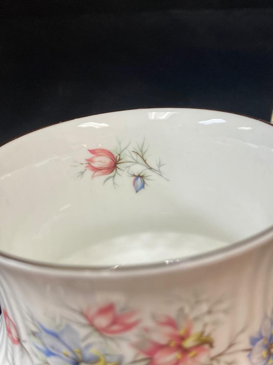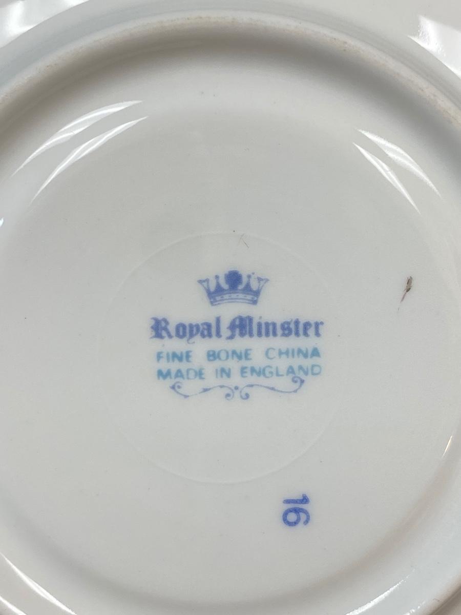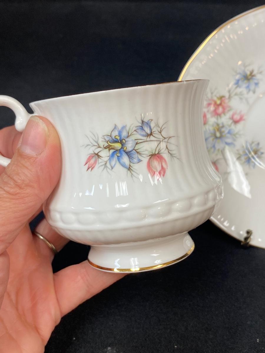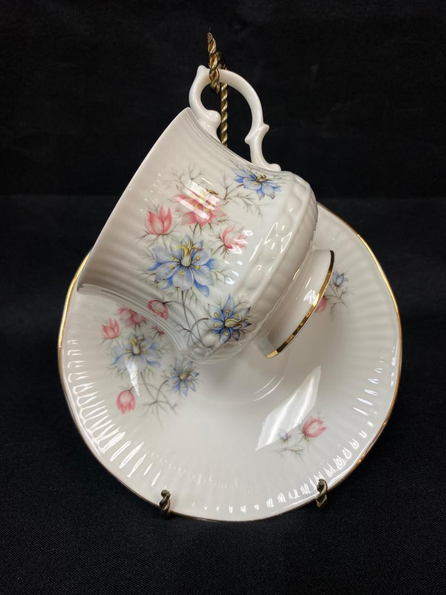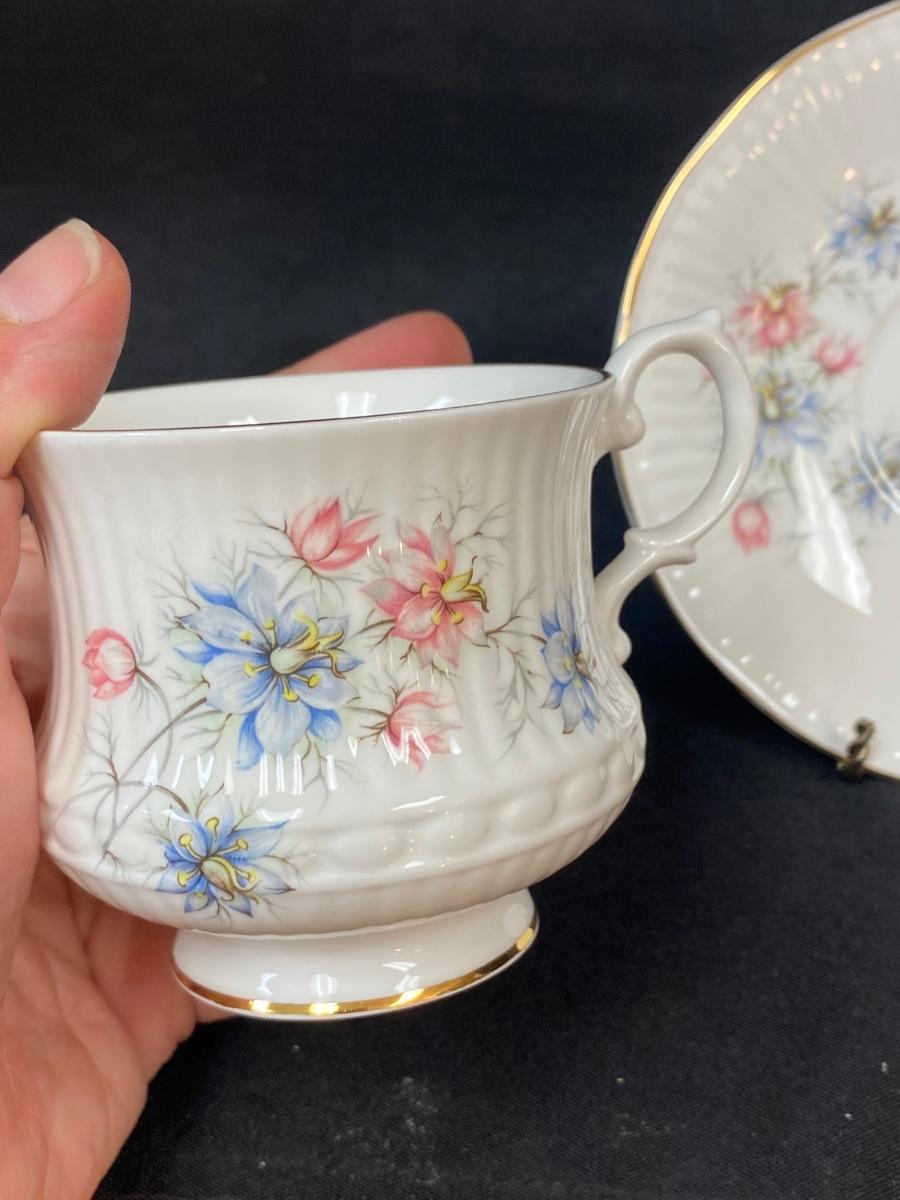 Royal Minster Bone China Teacup and Saucer Ribbed with Pink and Blue Flowers