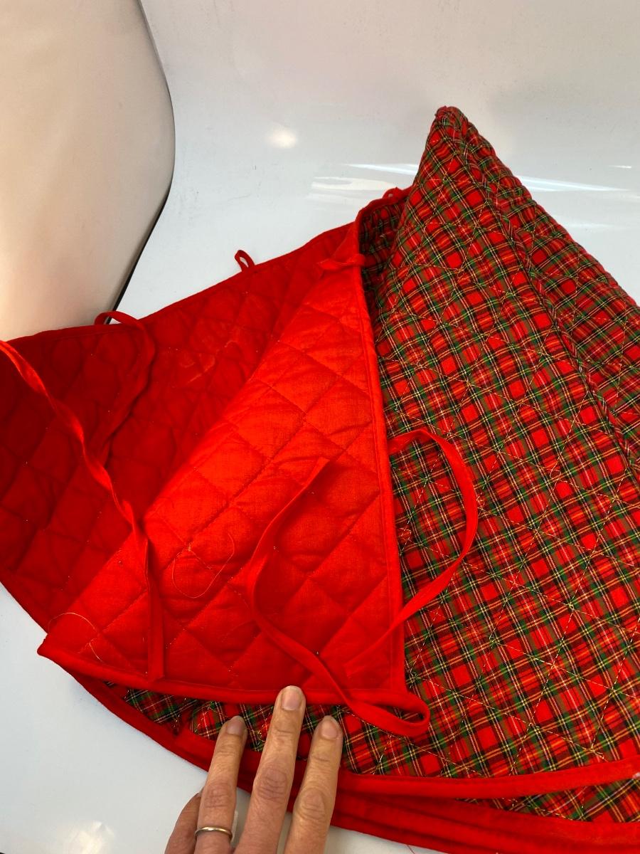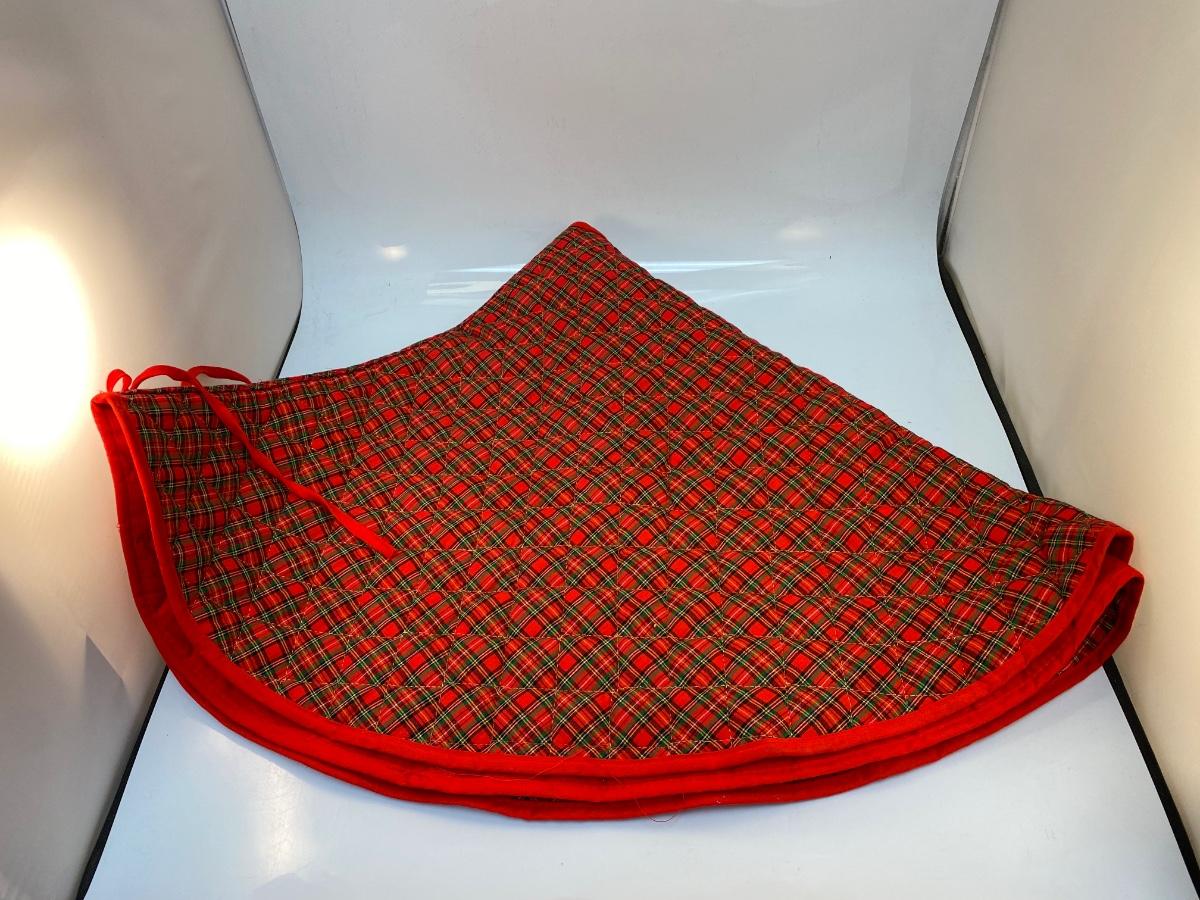 Red and Green Plaid Christmas Holiday Tree Skirt. Good condition. Tie closure. About 40" diameter