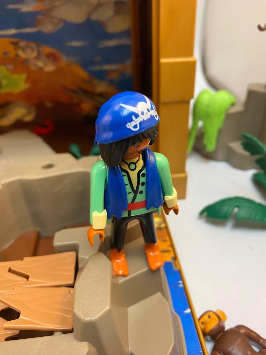 Playmobil Treasure Chest Pirate Playset. All parts fit inside the "treasure chest" style caddy. Sides fold down for play. See photos for included pieces. Comes with original manual booklet.